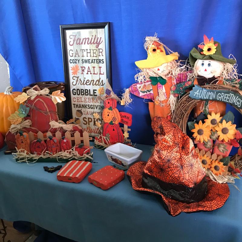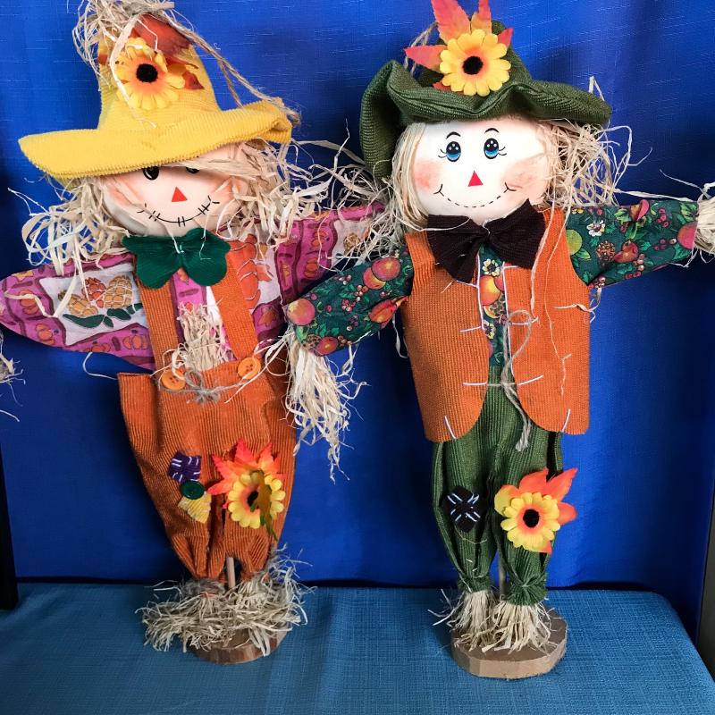 Lot includes pair of scarecrows (approx. 19.5” tall), wreath, pumpkins along a fencer row, singing and dancing witch’s hat, pair of pumpkin decorations, stacked pumpkins, stuffed pumpkin, large wooden pumpkin decoration, large vase, and worded wall art. No shipping available. Local pickup only in Maggie Valley, NC.