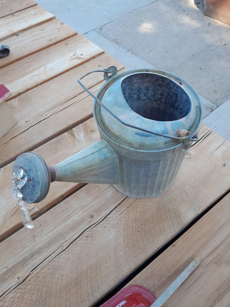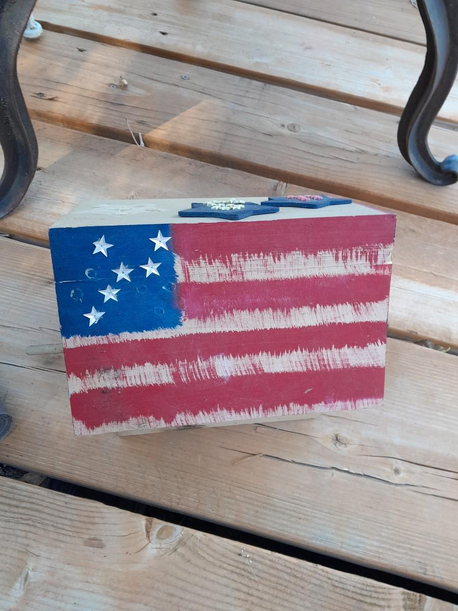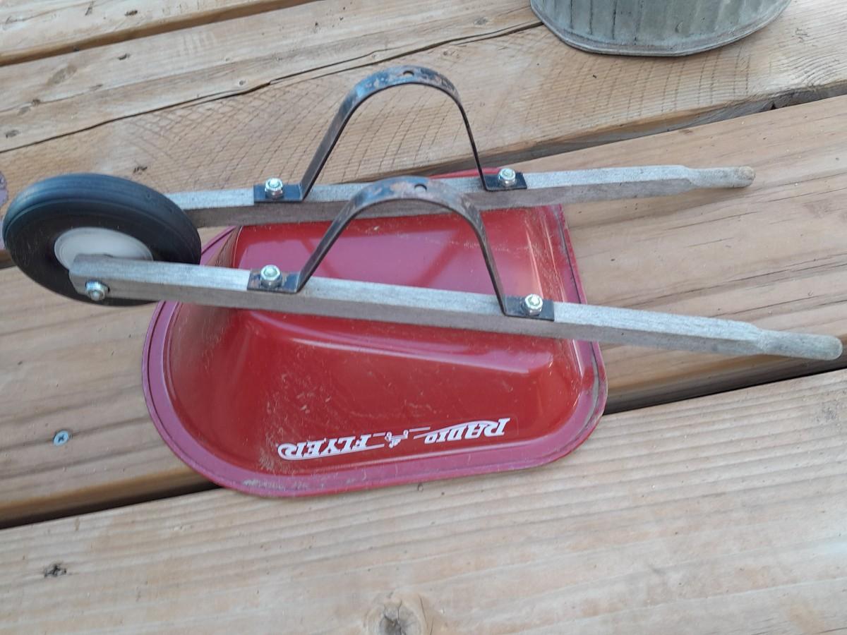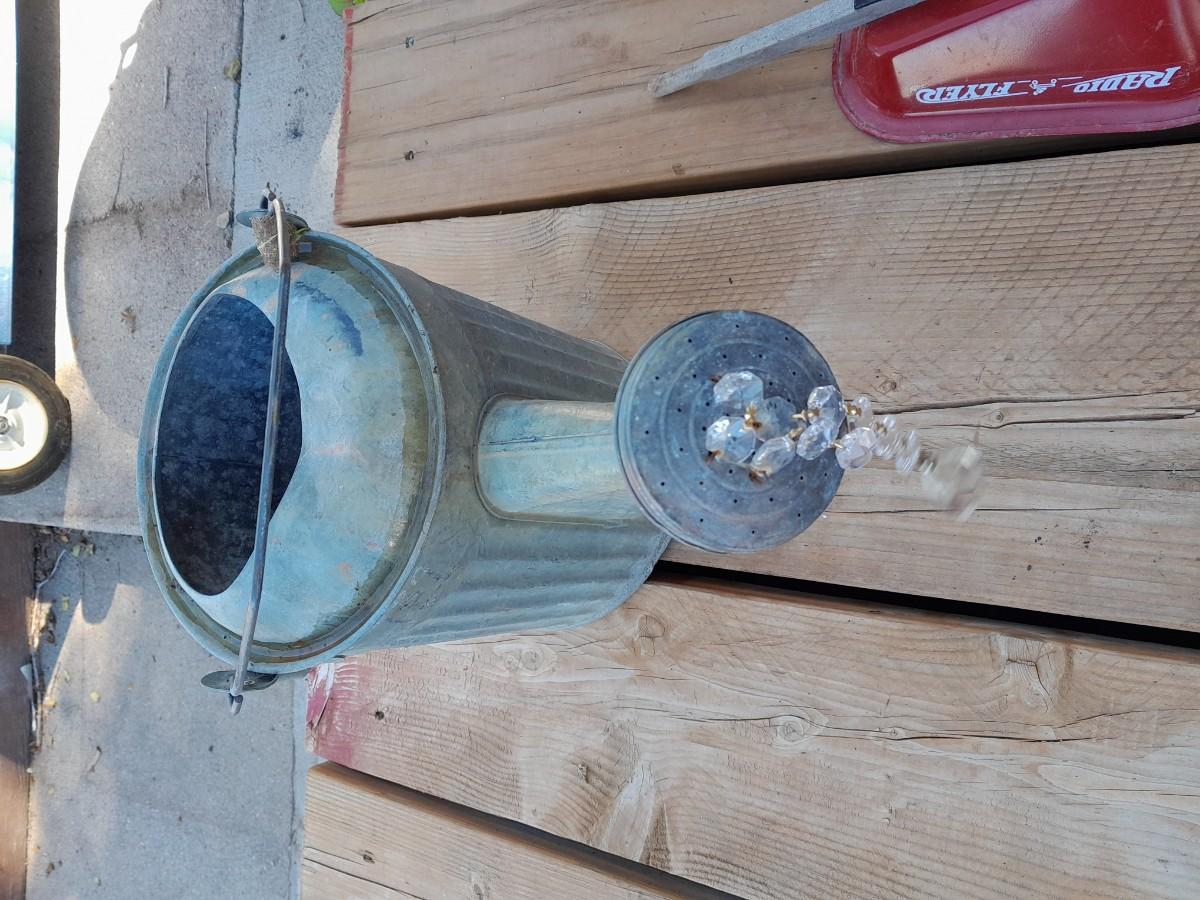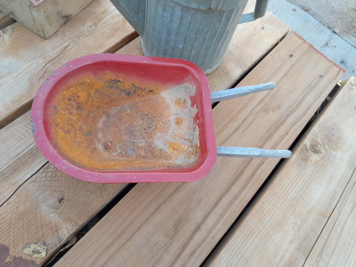 PATRIOTIC BIRD HOUSE, MINIATURE WHEELBARROW AND GALVENIZED WATERING CAN