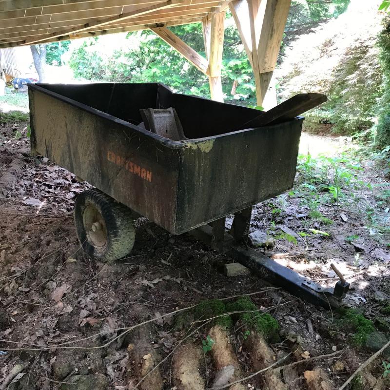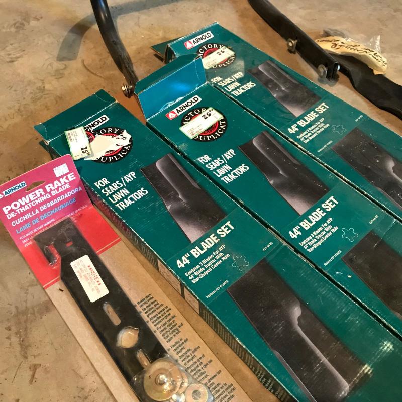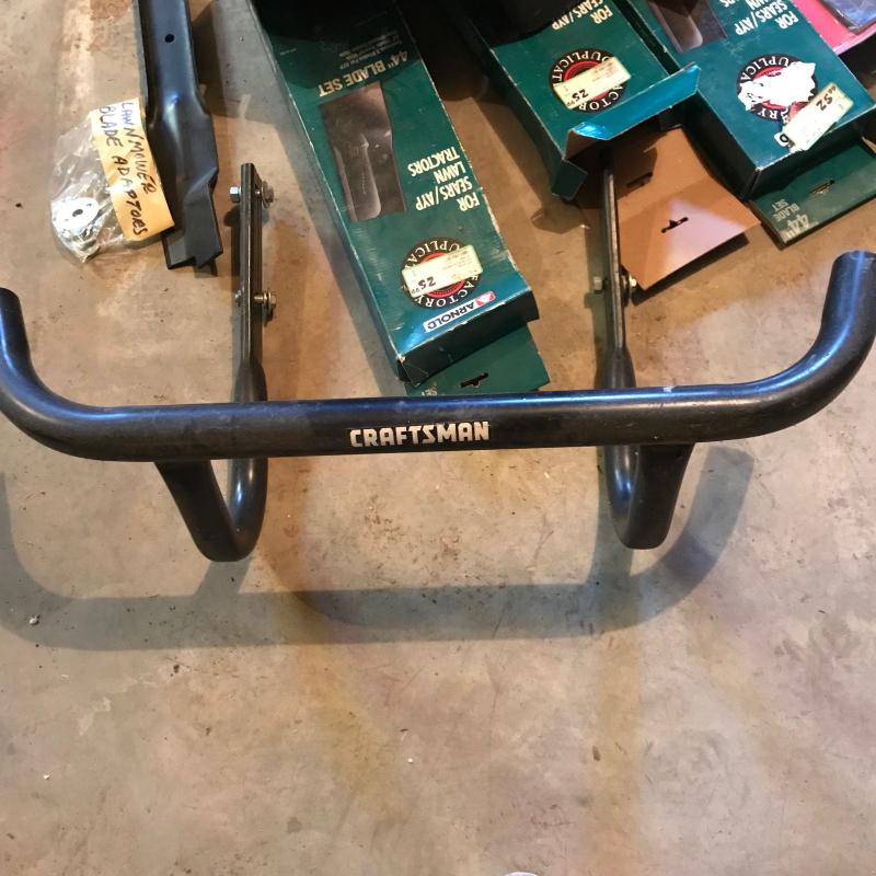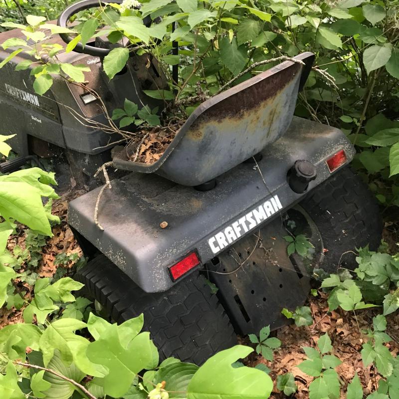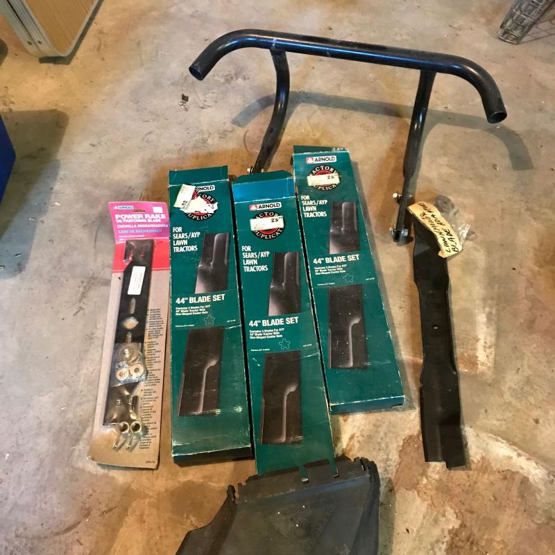 This riding lawn mower has been in yard so can not guarantee it works. Also includes a trailer that is also in pretty bad shape. If you do not want lawn mower or trailer, you can leave those and just purchase the parts in this lot. Lot also comes with blades, fender and other parts. No shipping. Local Pick up only.