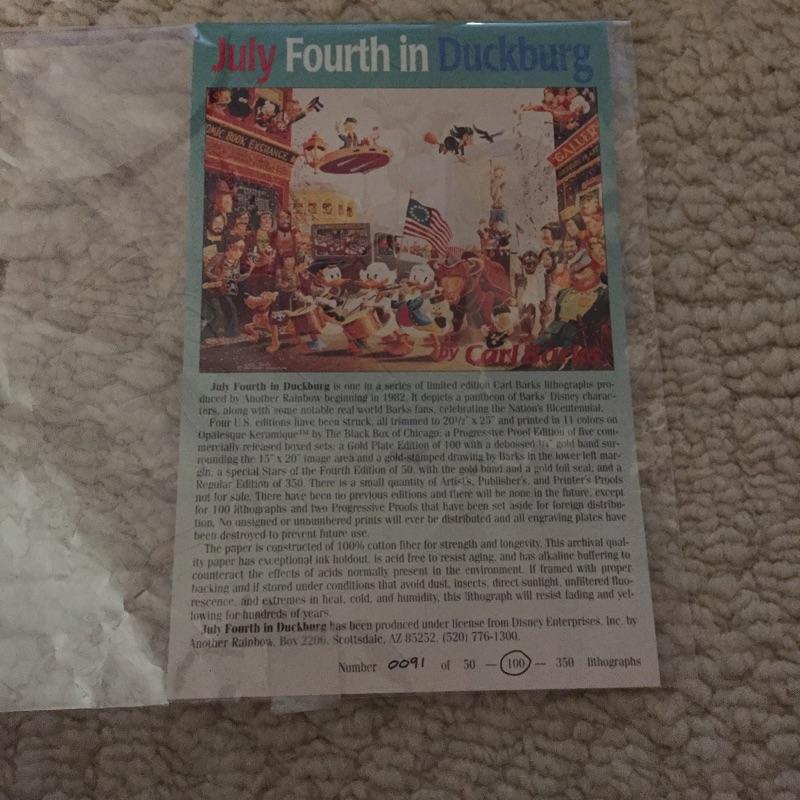 Lot 289- Signed/Numbered Carl Bark’s Lithograph “July Fourth in Duckburg”