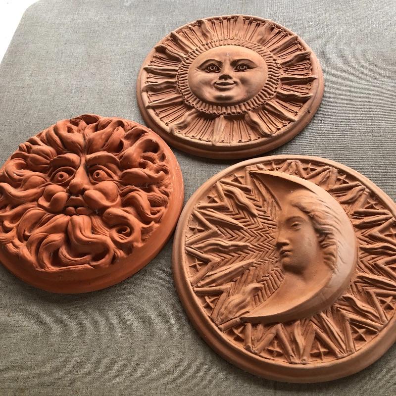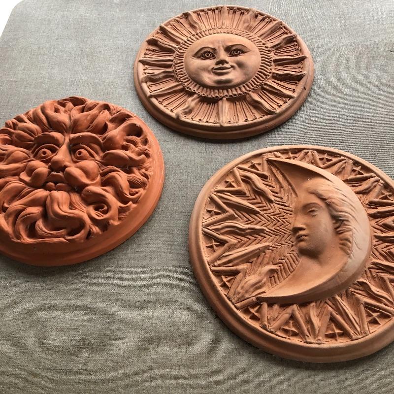 Decorate your home with these beautiful outdoor plaques! The two plaques from Italy are 14” in diameter and the other is 13” in diameter. Local pick up only.