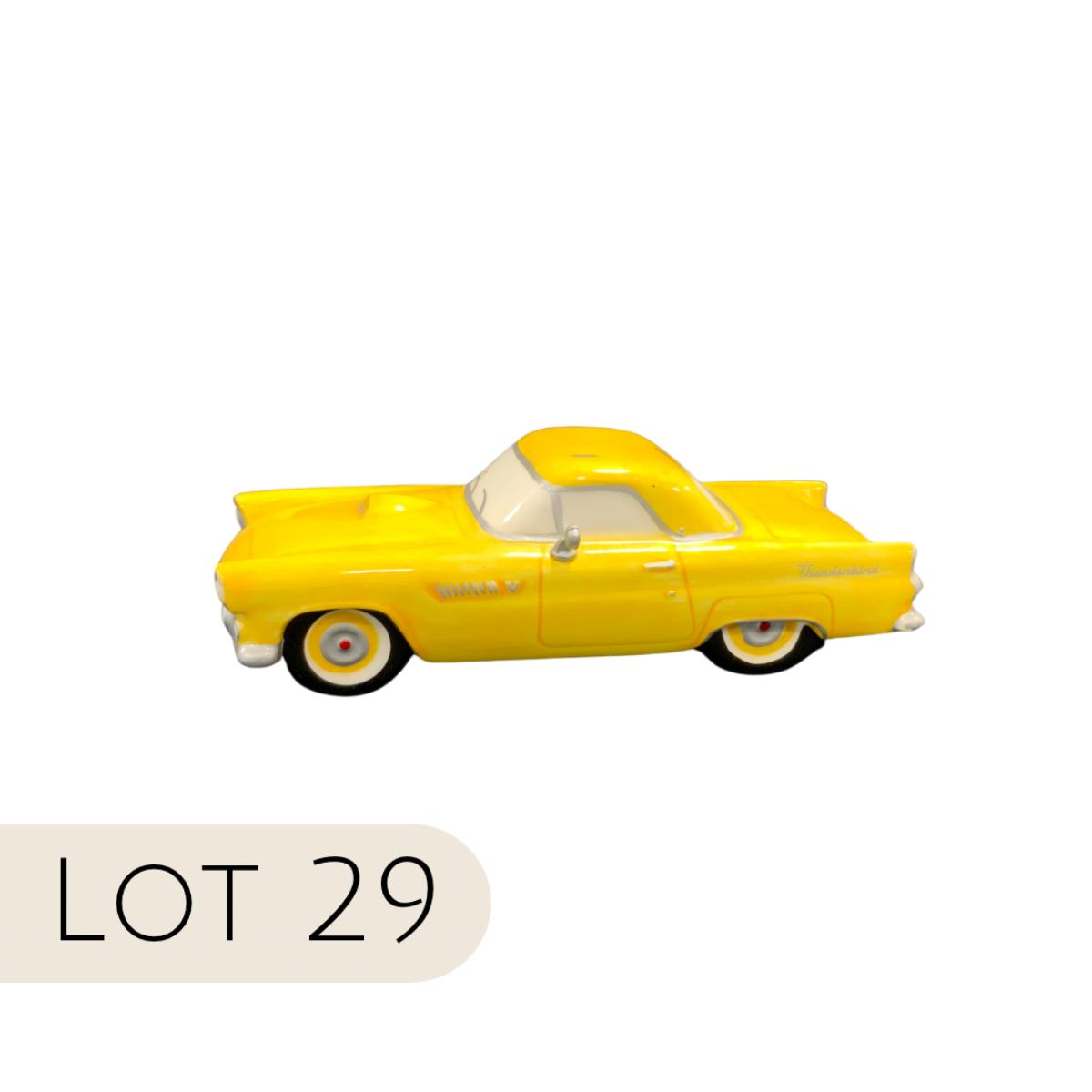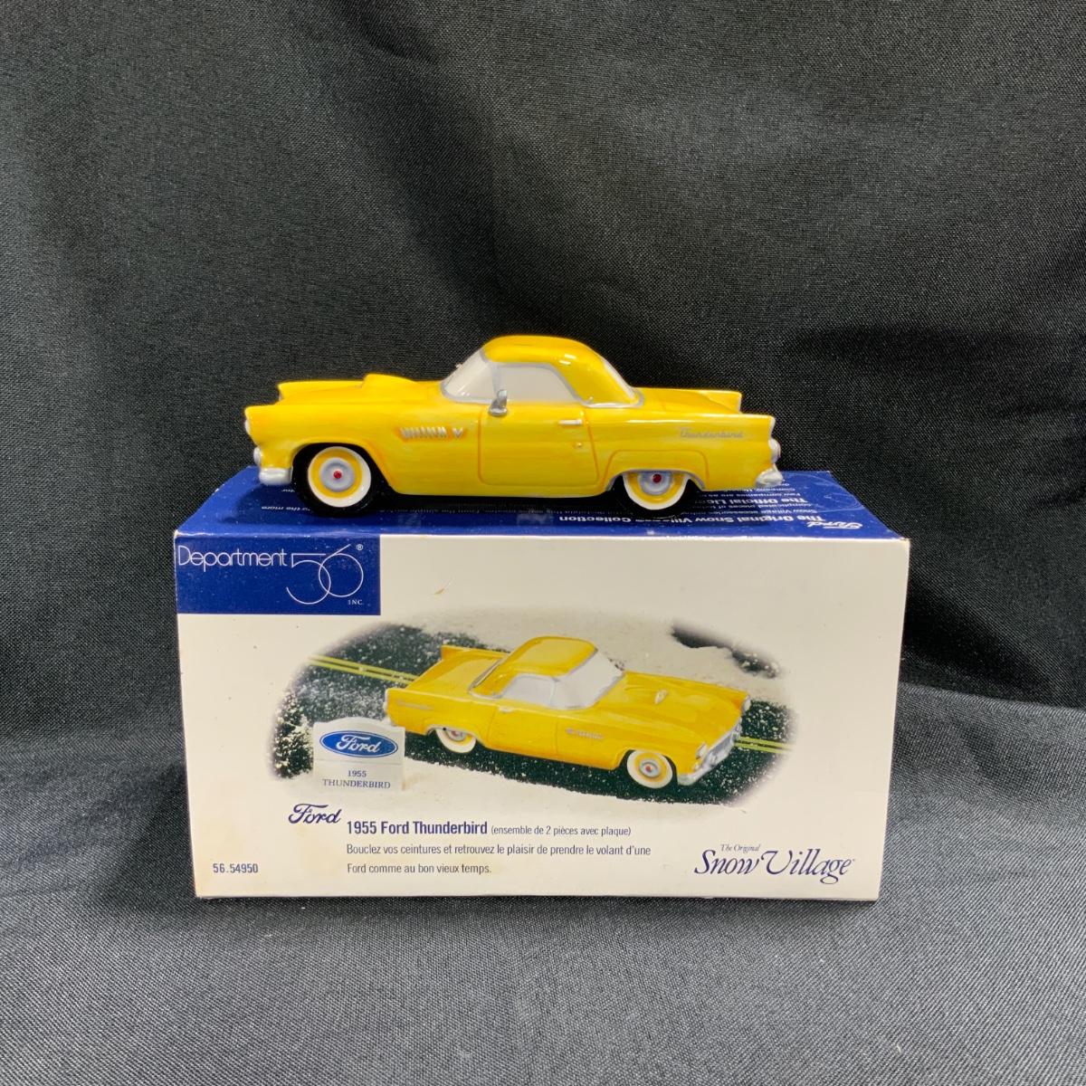 Department 56 and Ford proudly present the 1955 Ford Thunderbird in a shocking yellow. I’m checking to see if the sign is in the box and will report back. Please see photos for details and condition. ::: Shipping is available on this lot. If you require shipping you must let us know at the close of the auction. We will coordinate with you after the item has been won. Shipping fees will include insurance up to or exceeding the value of all items being mailed. If you have any questions regarding this lot please contact the auctioneer either via this website, by direct email or by phone. PICK UP TIMES and other important information can be found in the TERMS and DESCRIPTION of the auction. Please take a look for pertinent information. Thanks! Any condition statement is given as a courtesy to a client, is an opinion, and should not be treated as a statement of fact. Reference to condition written, oral or within a condition report shall not be regarded as a full account of condition and may not include all defects, alterations, or restorations. Absence of a condition report does not imply a lot is flawless or lacking imperfections or damage. Katherine’s Auction & Appraisal Service shall have no responsibility for any error or omission. Returns shall not be accepted on the basis of condition.