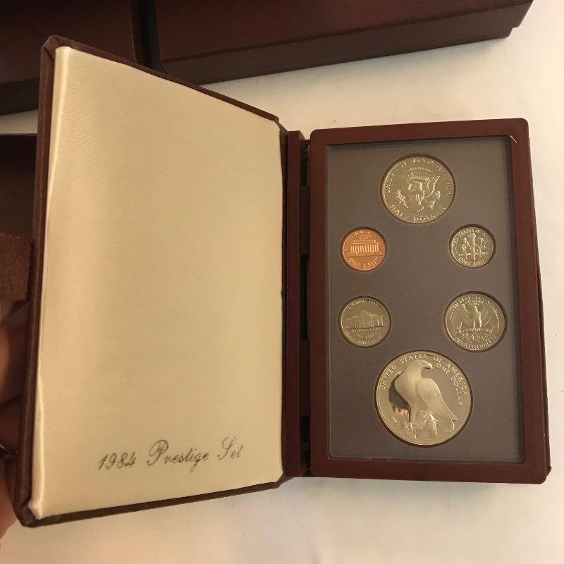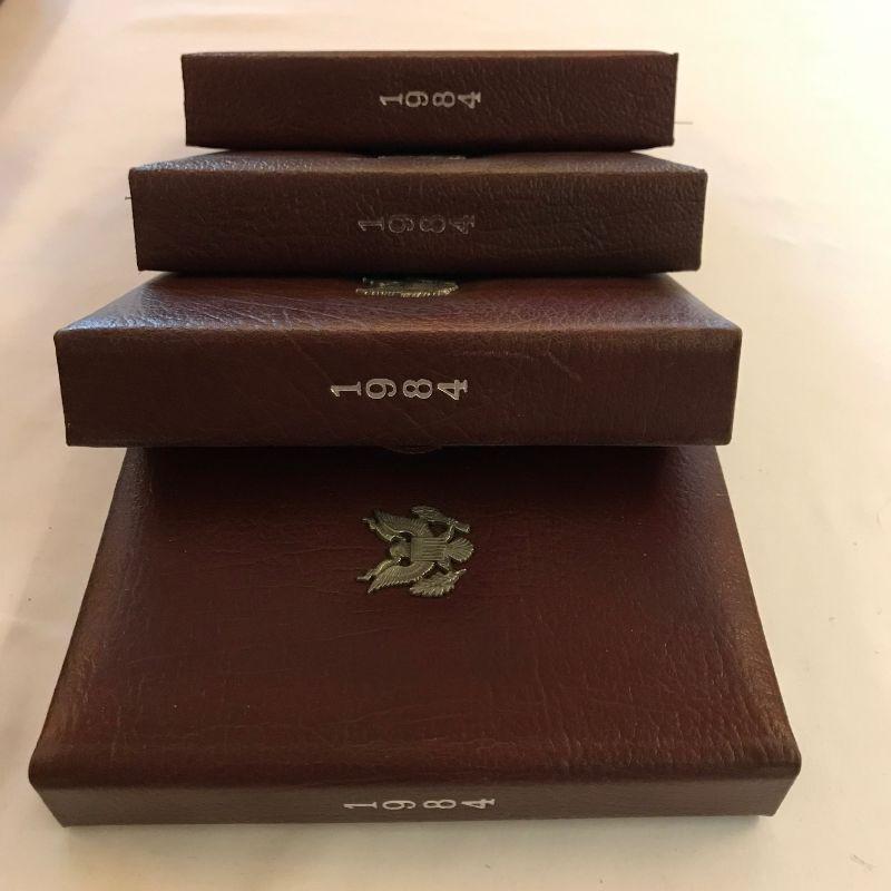 Four 1984 Prestige Sets. One set’s leather snap shows age, see photos.