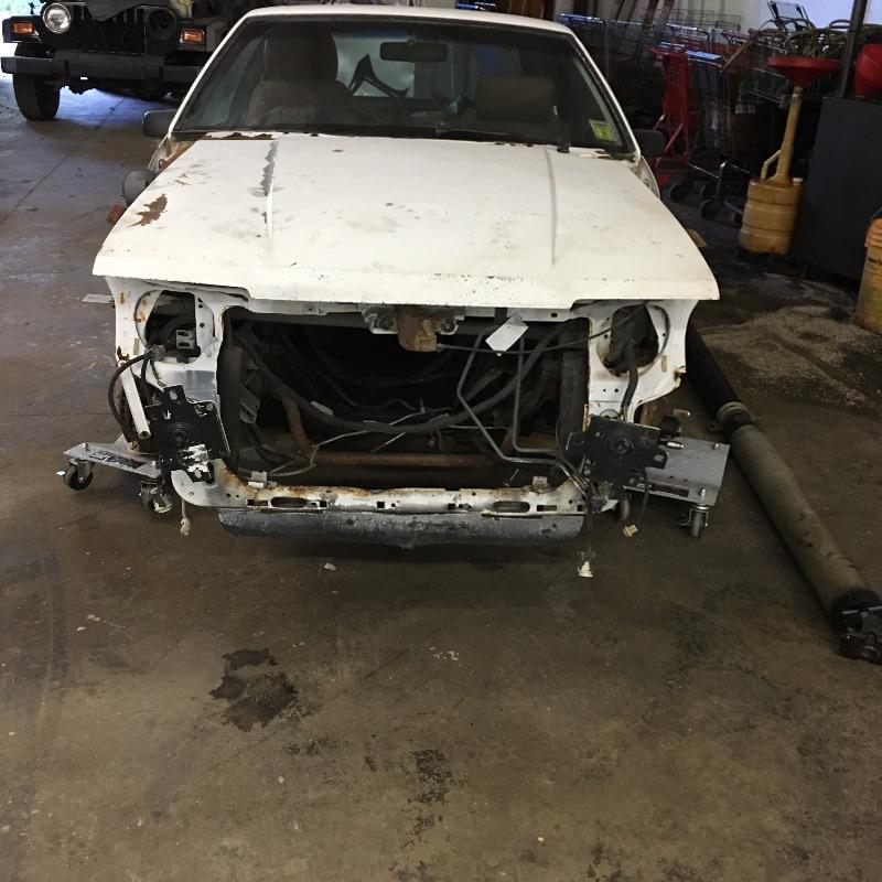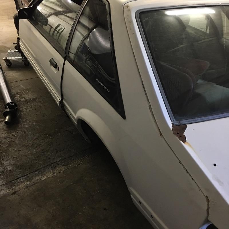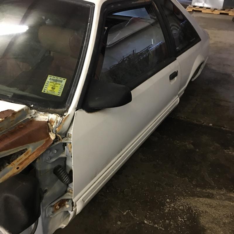 1987 Mustang with title. Get back on the road with parts for your mustang or get this one going. Dollies not included. Mustang is missing drivetrain, rear end, fenders, bumpers, see pictures for what else is missing.