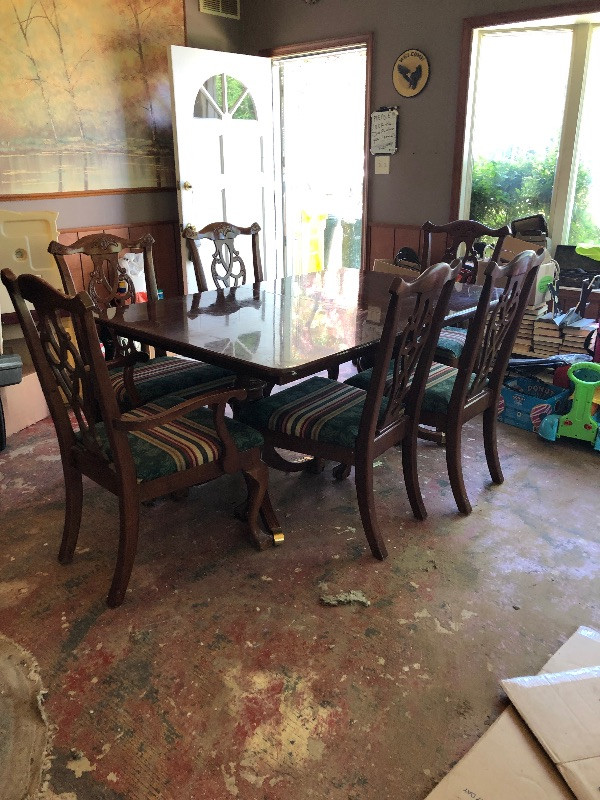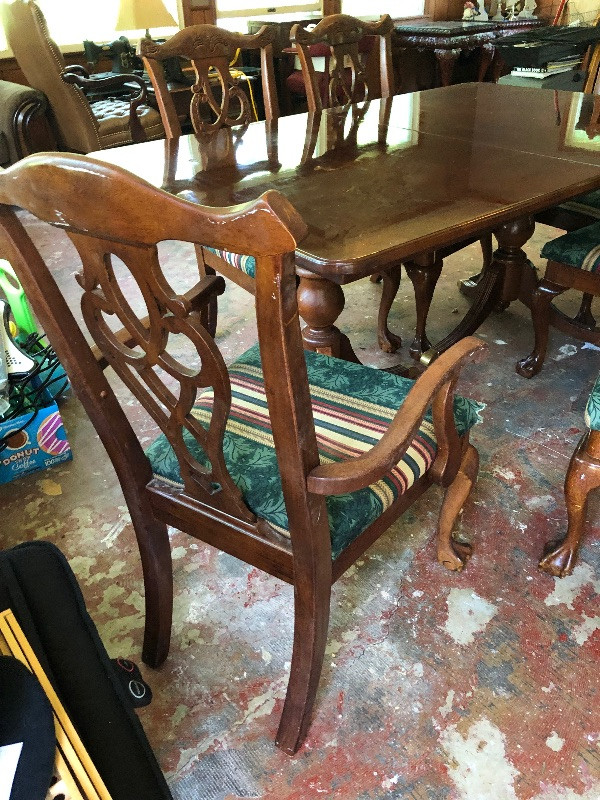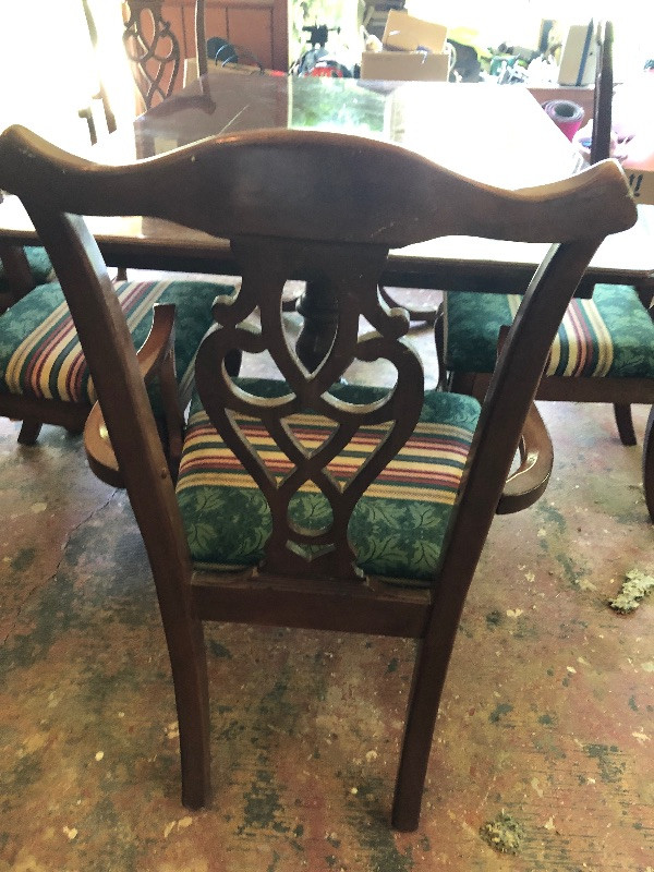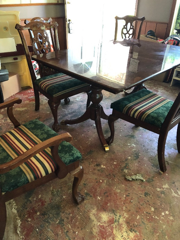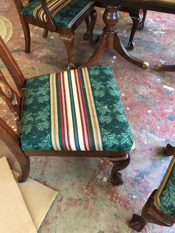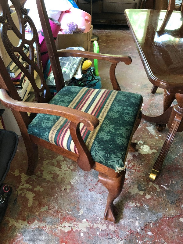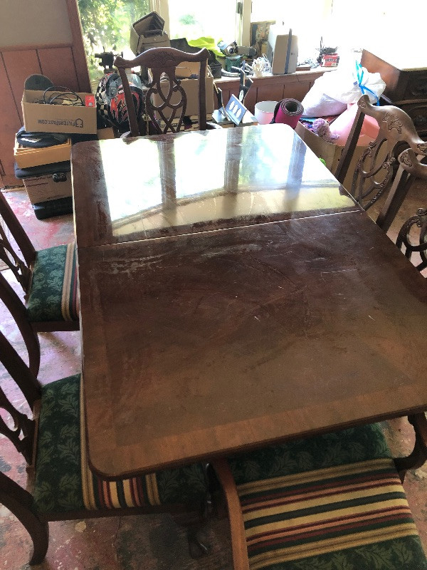*Needs a little TLC - Chair fabric needs cleaning. Some wear and tear and some damage as shown in pictures on table and chairs. Fabric can easily be replaced!
