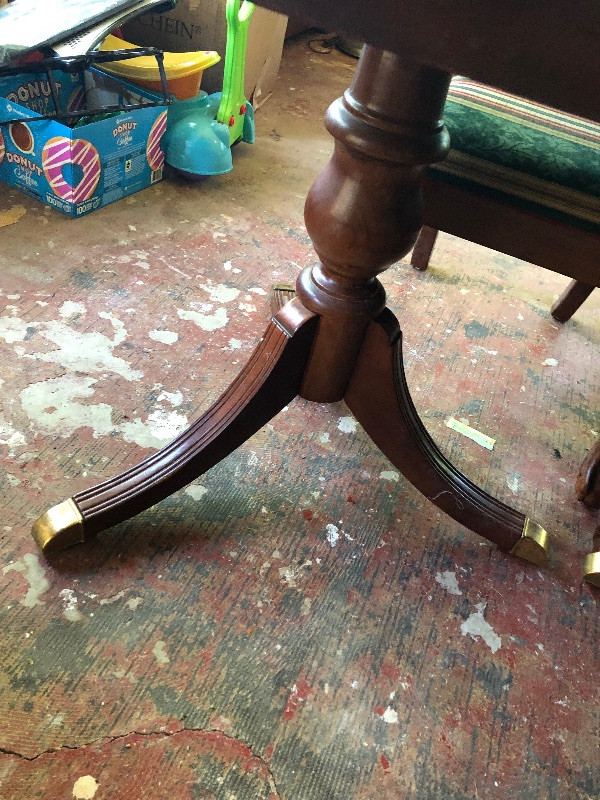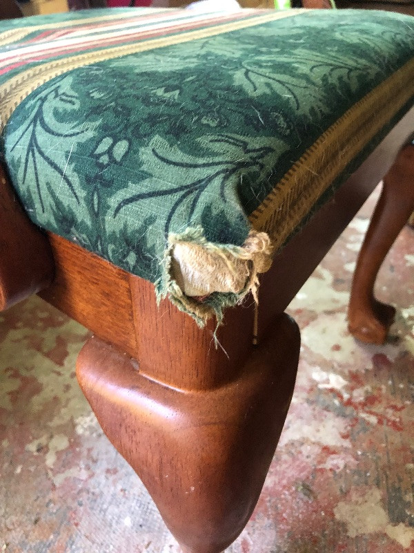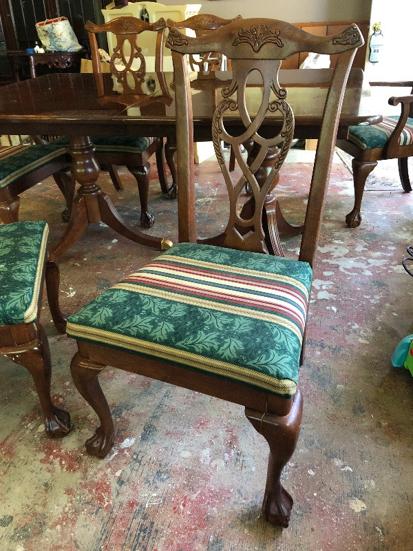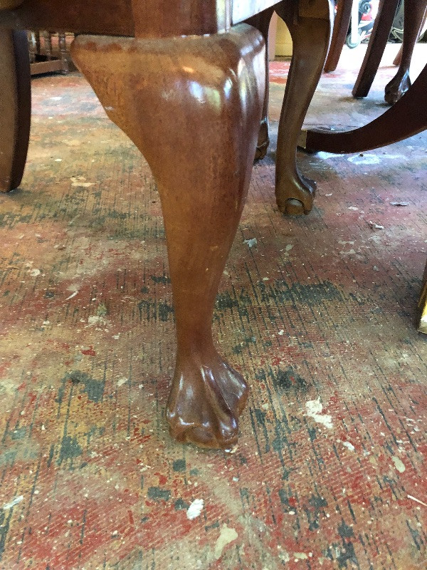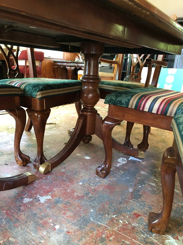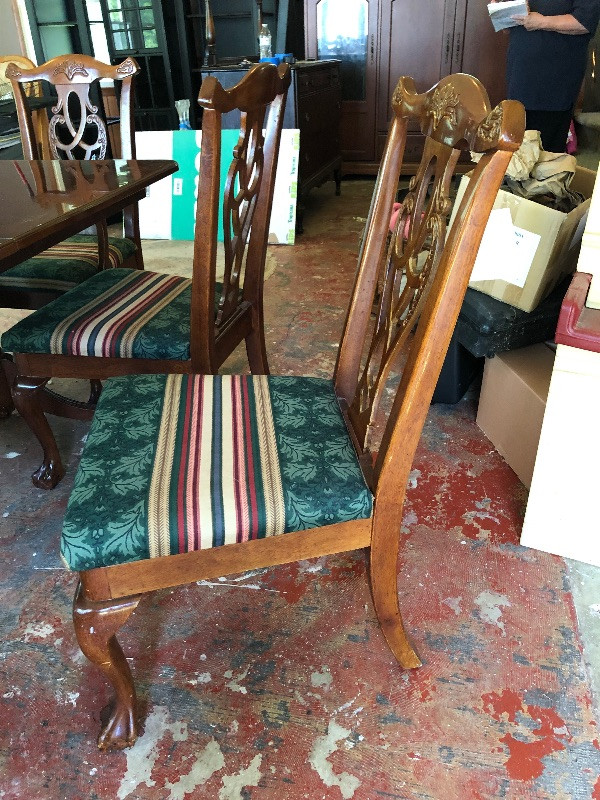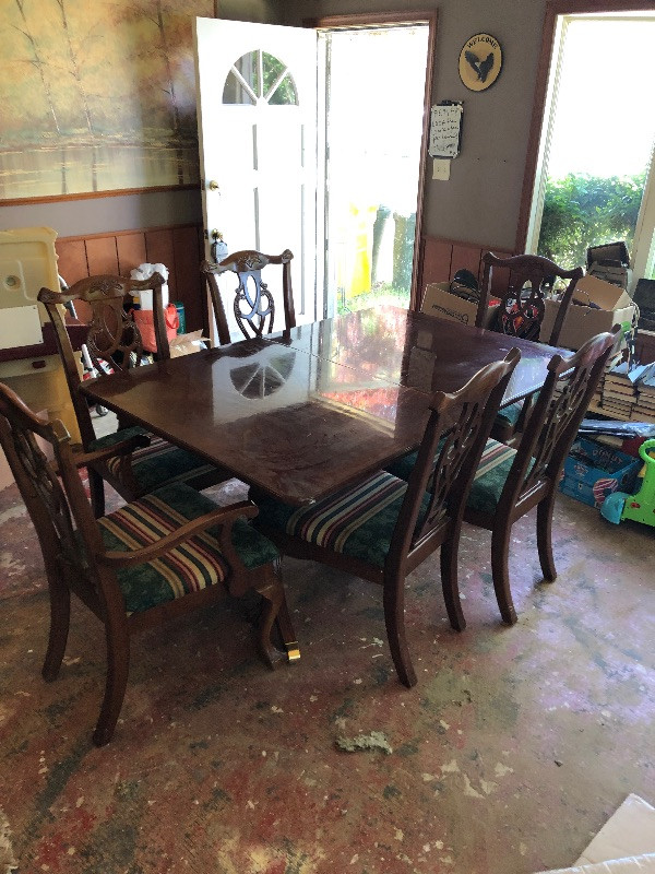 *Needs a little TLC - Chair fabric needs cleaning. Some wear and tear and some damage as shown in pictures on table and chairs. Fabric can easily be replaced!