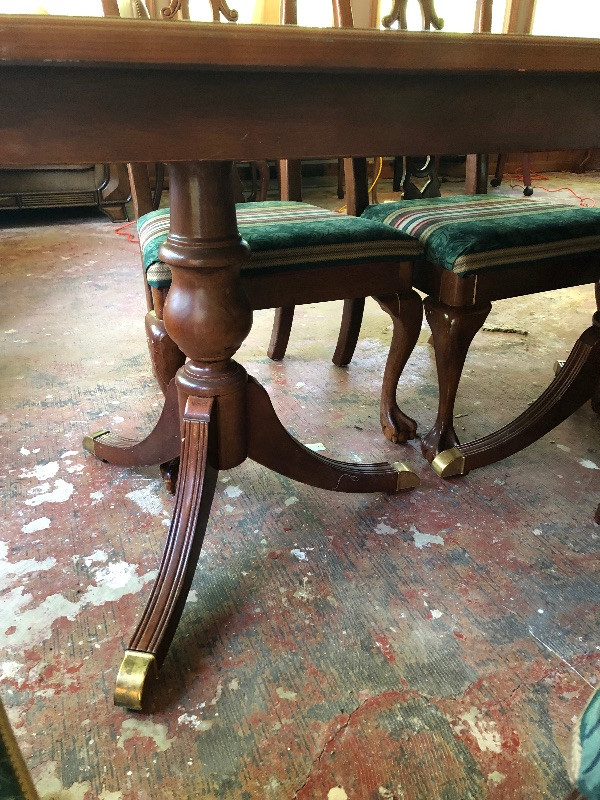 Double Pedestal Dinning Room Table with 2 Captain Chairs & 4 Upholstered Chairs
