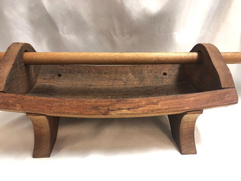 This unique item is a handmade piece that is part of a barrel that was made to hold paper towels or paper roll. Great for home or shop. Please see all pictures for the exact contents of the lot, condition, and measurements when needed. Thank you for looking and have fun bidding!