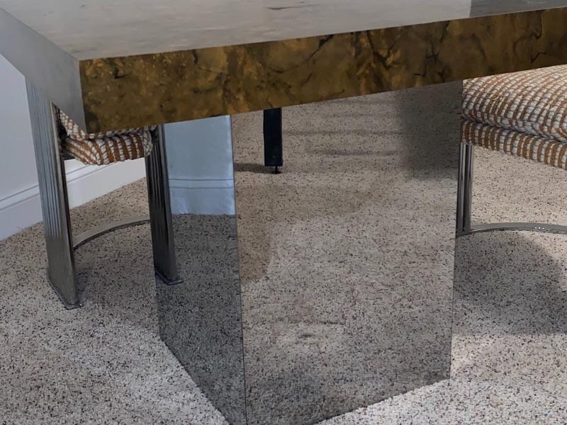 Lot 29:  Thayer Coggin MCM Dining Set: Designed by Milo Baughman, chrome chairs with plush seats