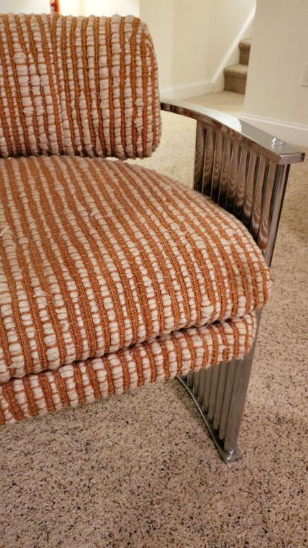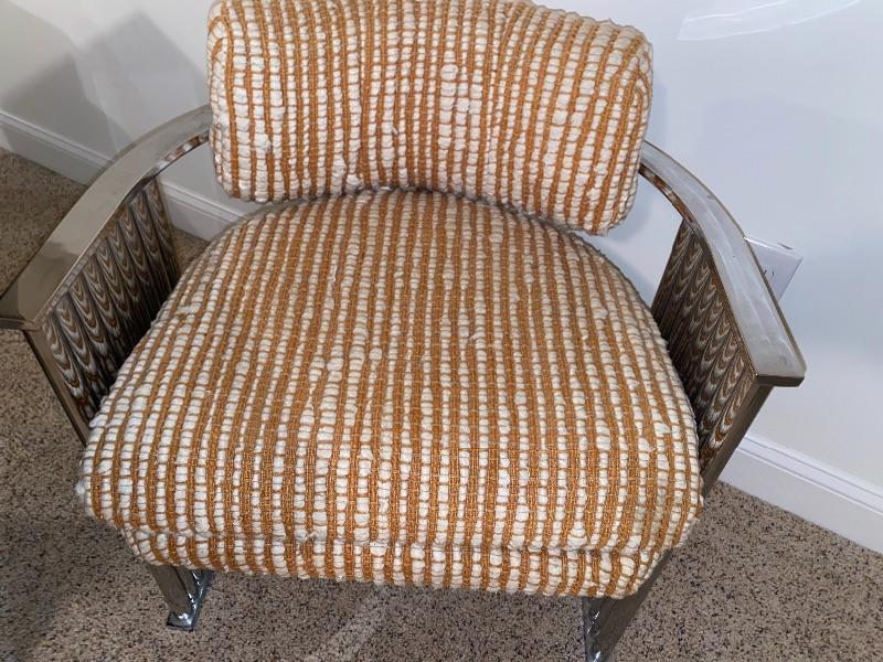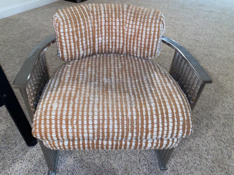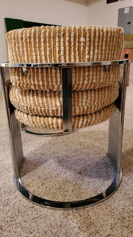 Lot 29: Thayer Coggin MCM Dining Set: Designed by Milo Baughman, chrome chairs with plush seats
