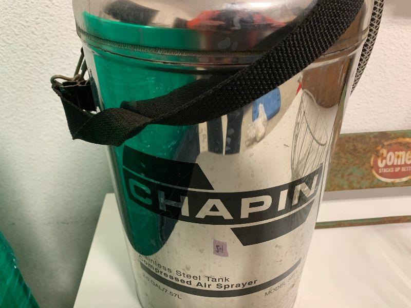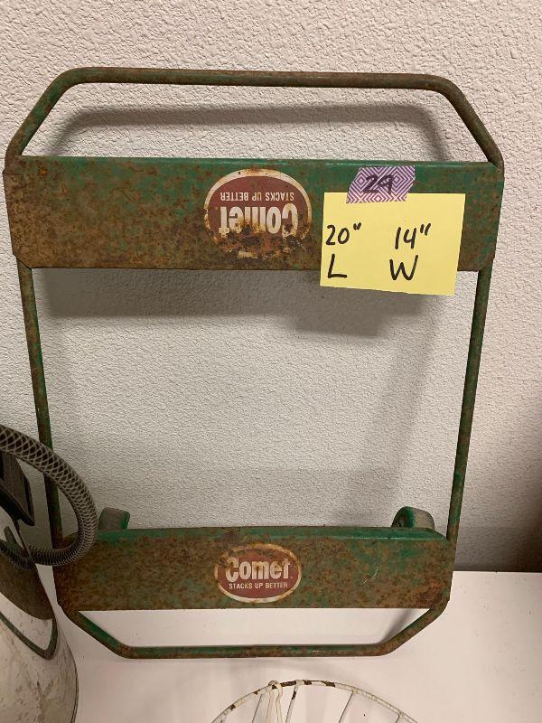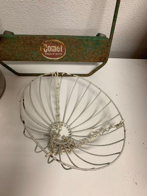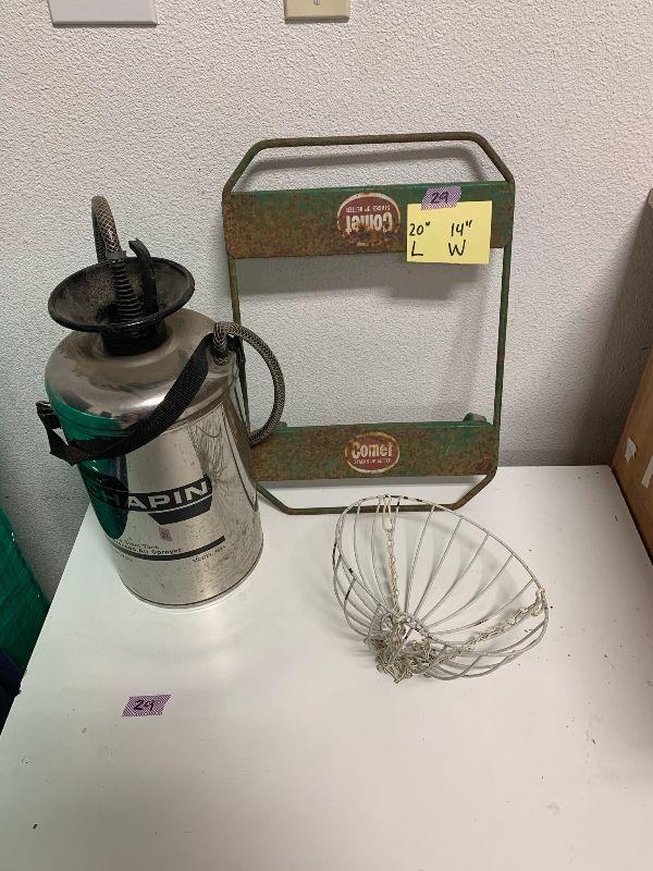Old Chapin sprayer (no lid), metal flat dolly "comet", 1 hanging basket