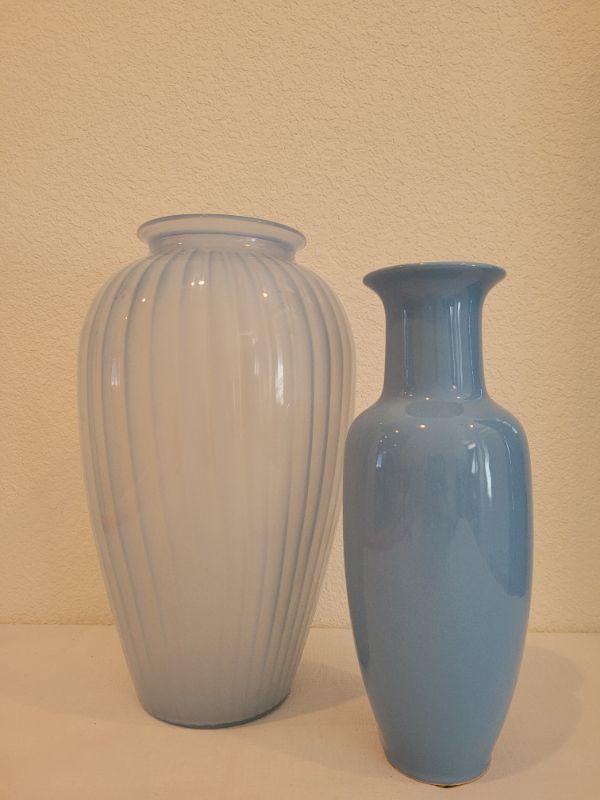 Lot 29: (2) Vintage Blue Vases (Glass and Ceramic)
