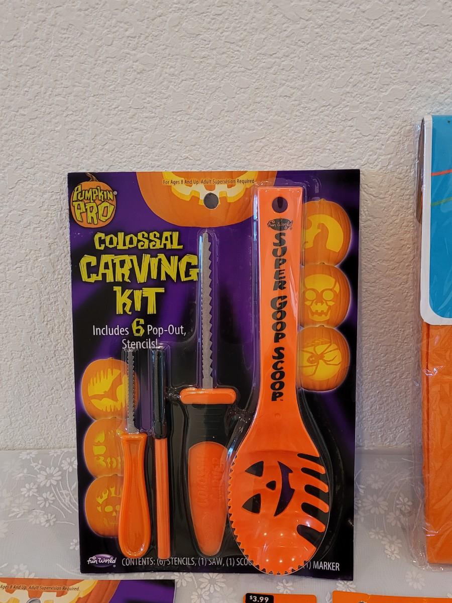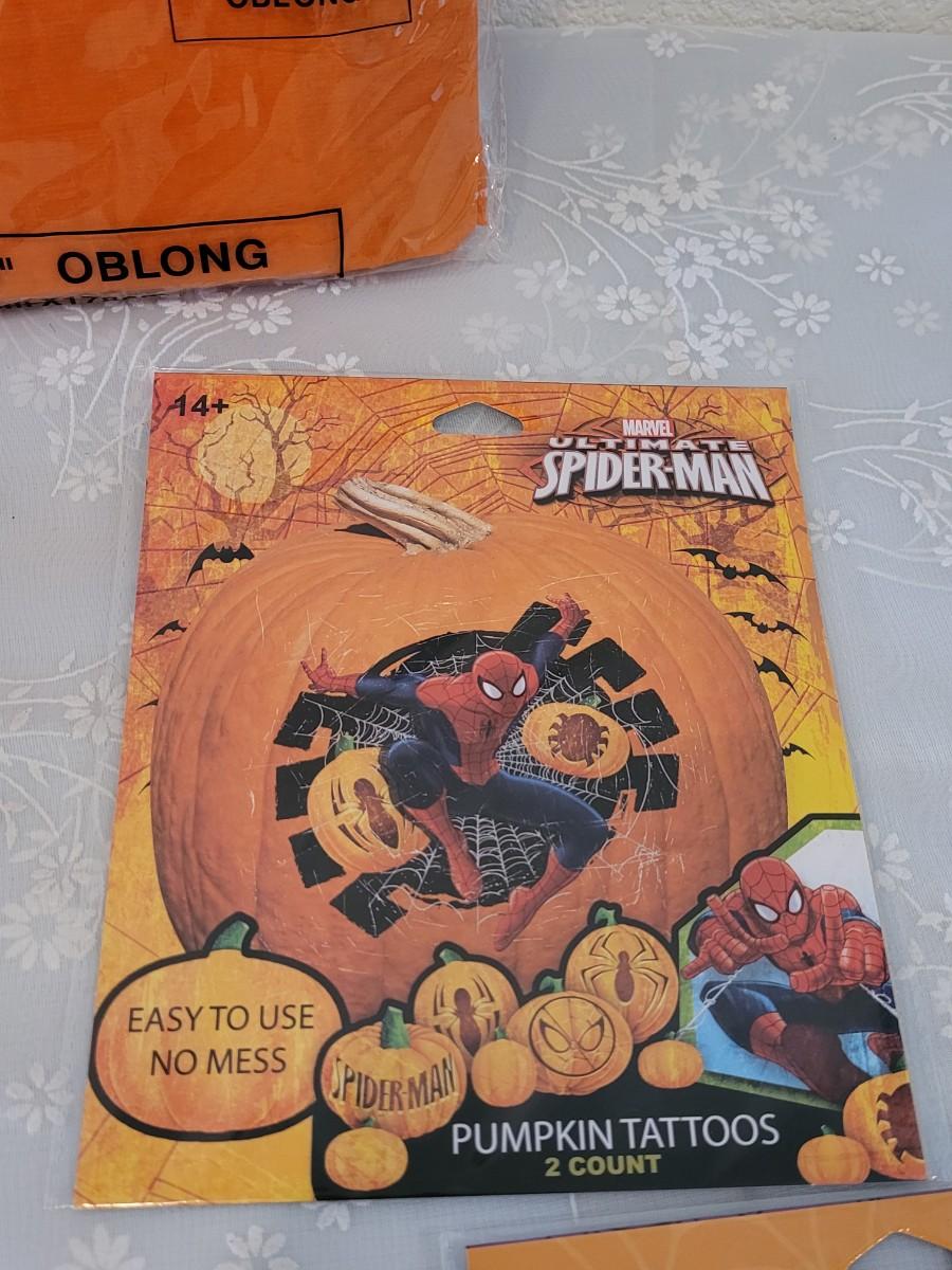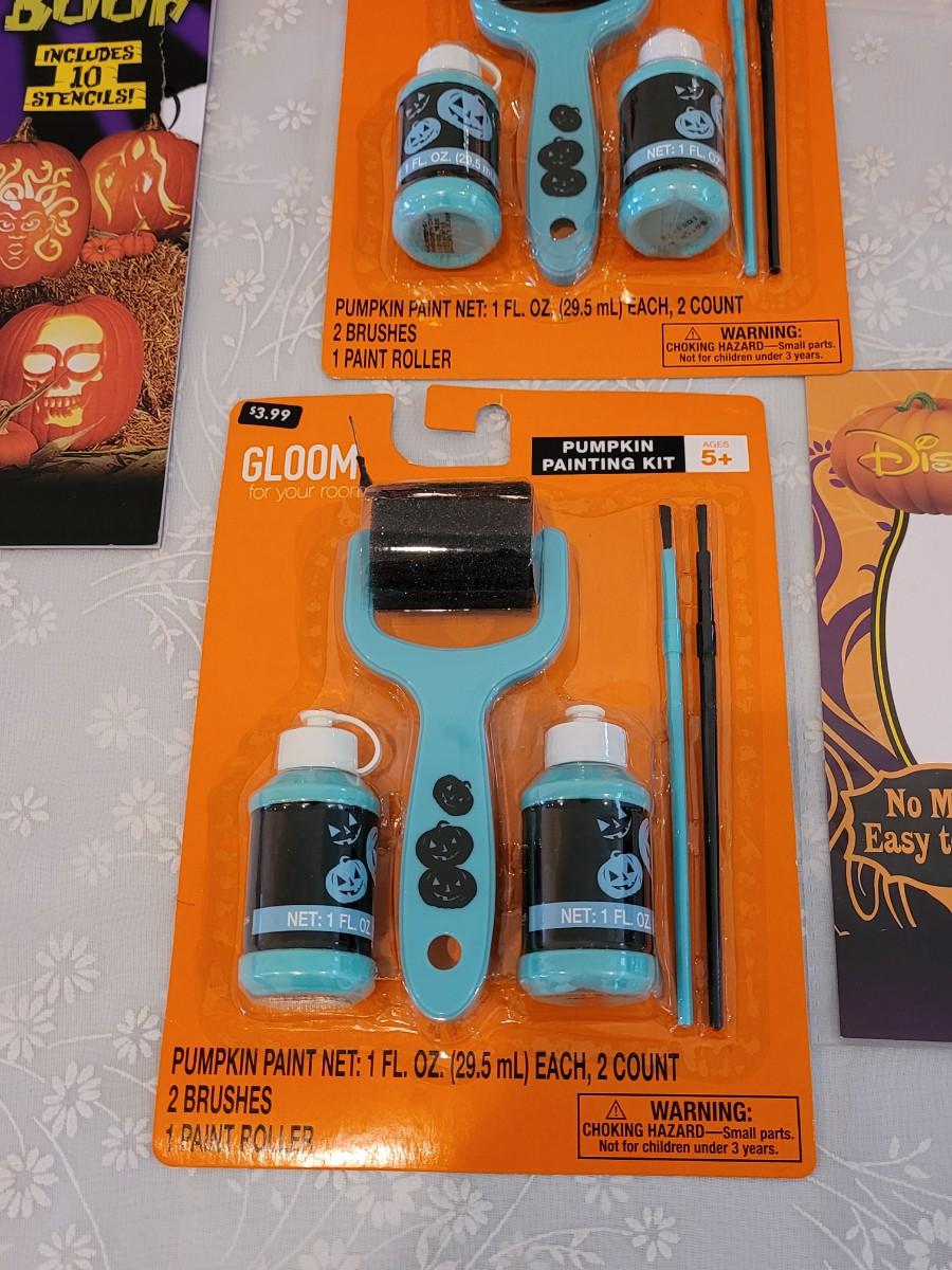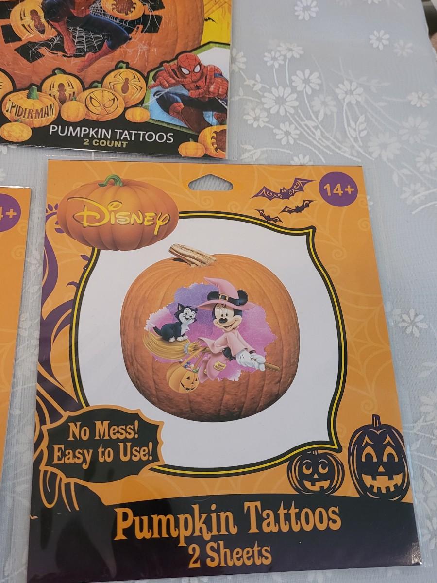 Lot 29: Pumpkin Carving Set. Pumpkin Paints, Pumpkin Tattoos, Stencils and Flannel Backed Disposable Tablecloth