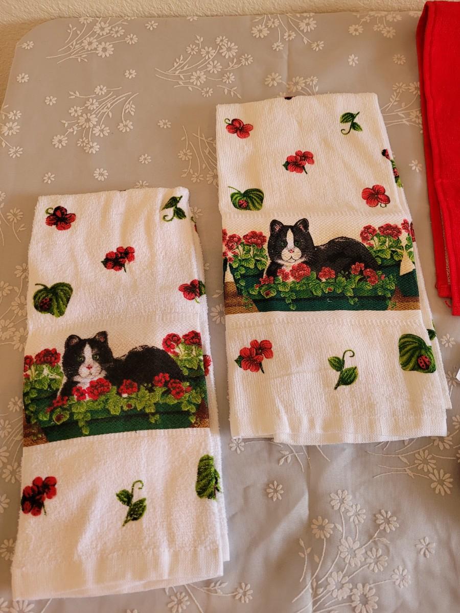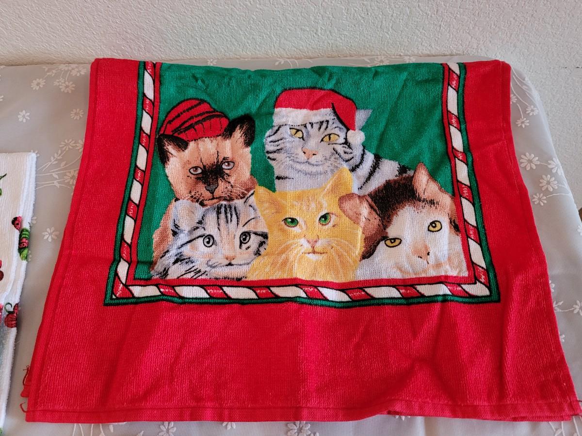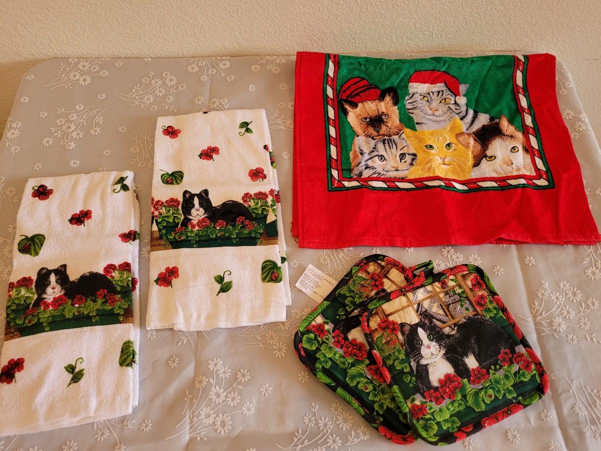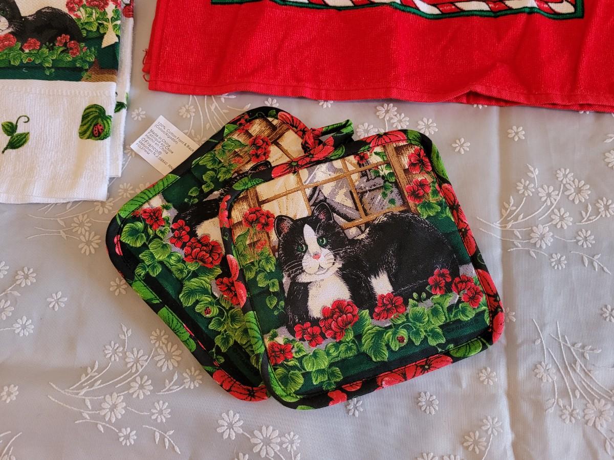 Lot 29: Christmas Cat Kitchen Towels and Hot Pads
