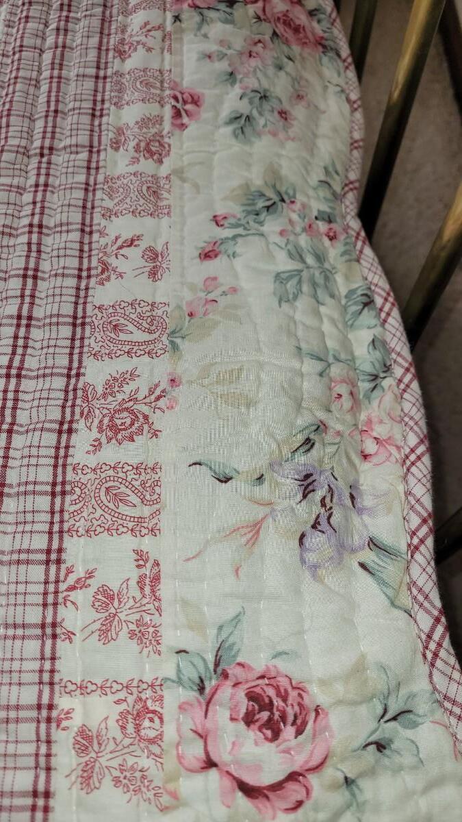Lot 29: Pink & White Contemporary Full Quilt