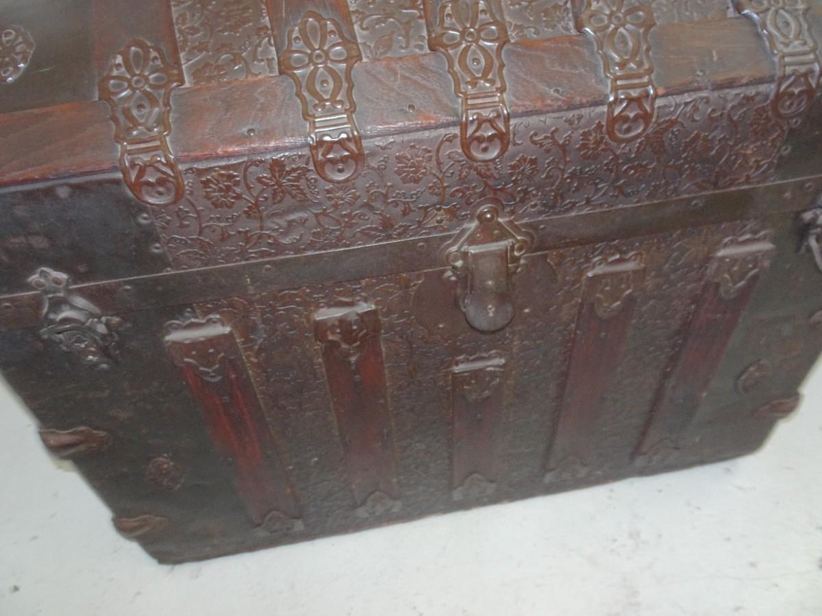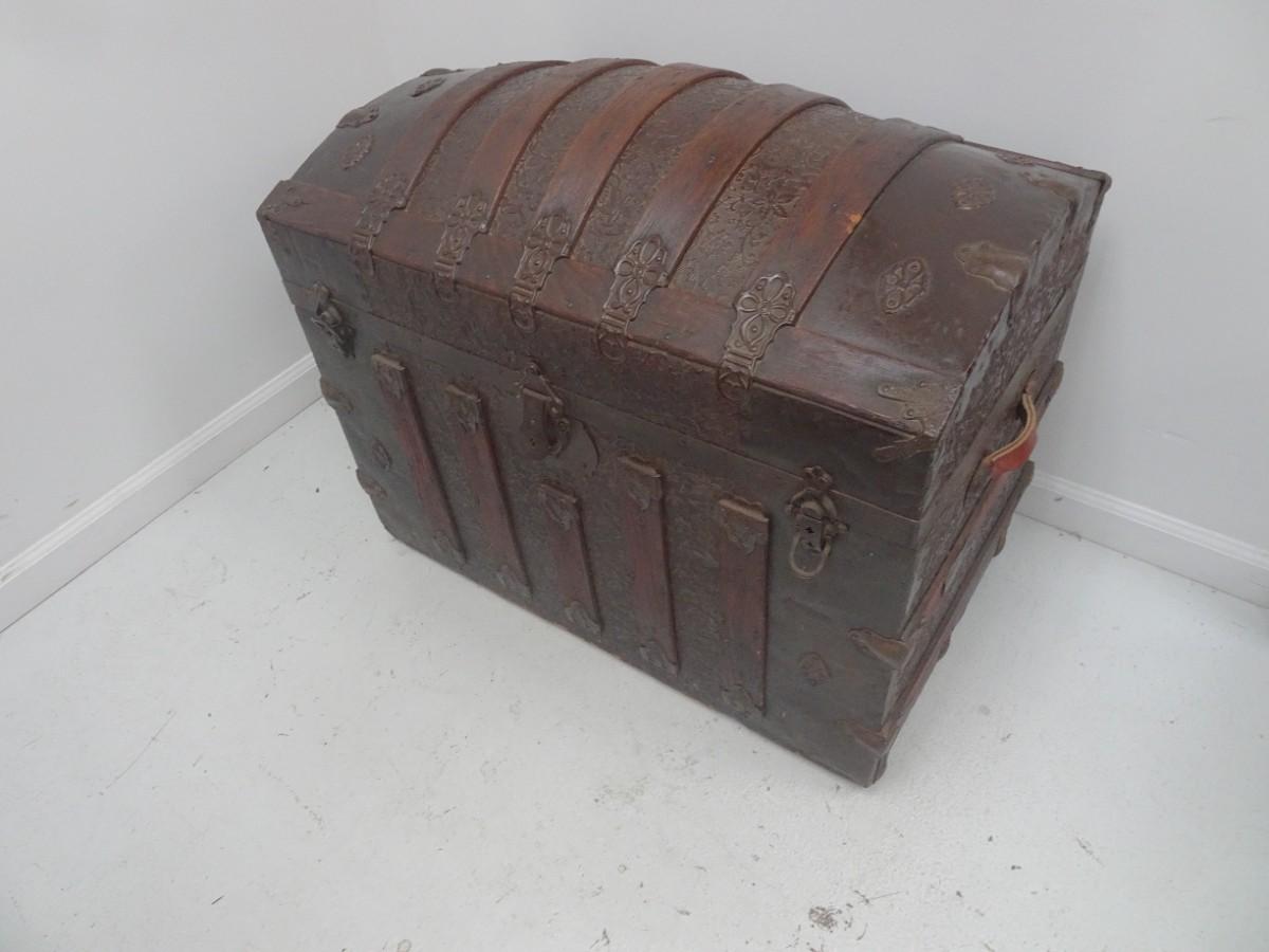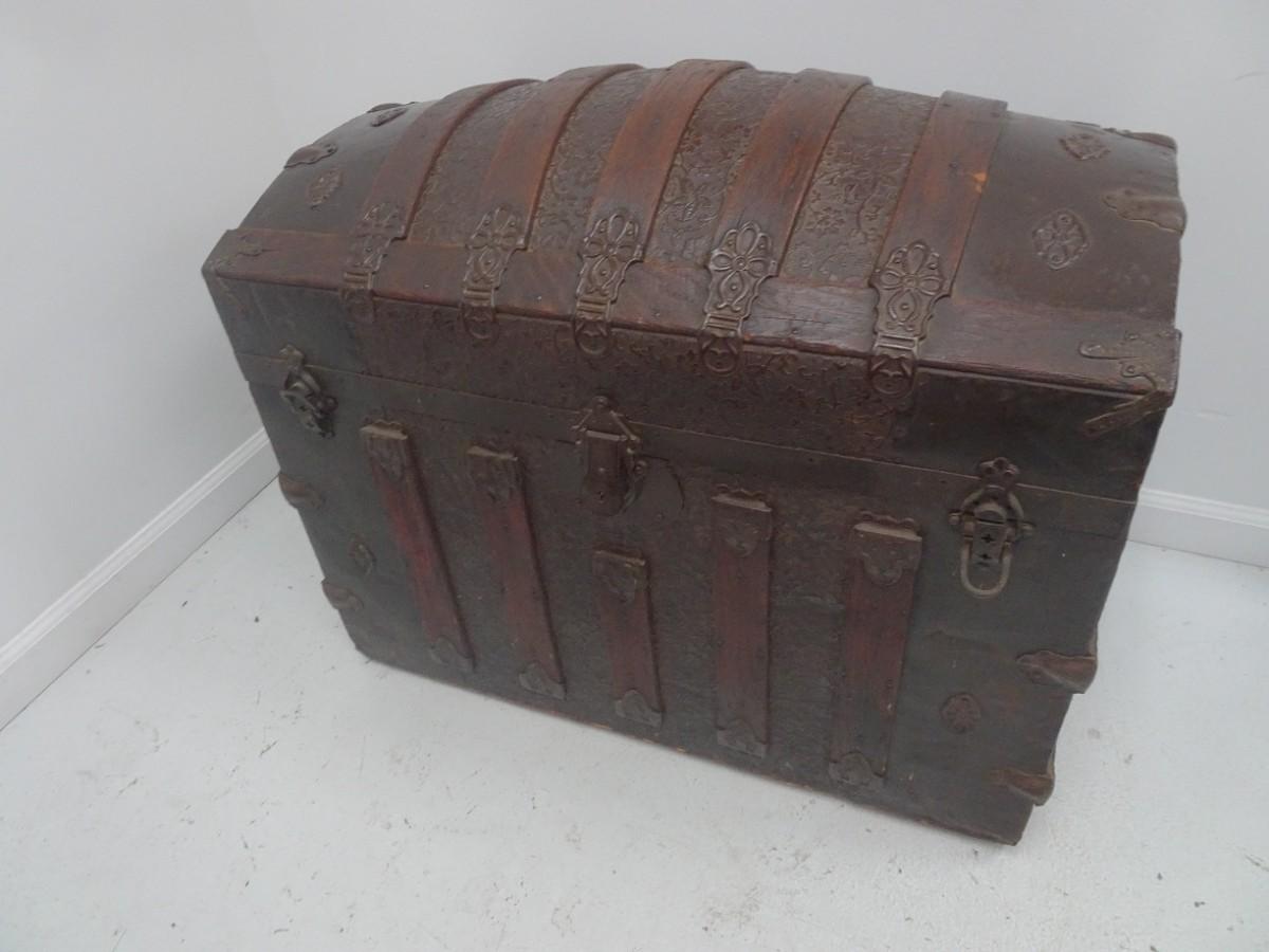 LOT 29. ANTIQUE HUMP BACK TRUNK