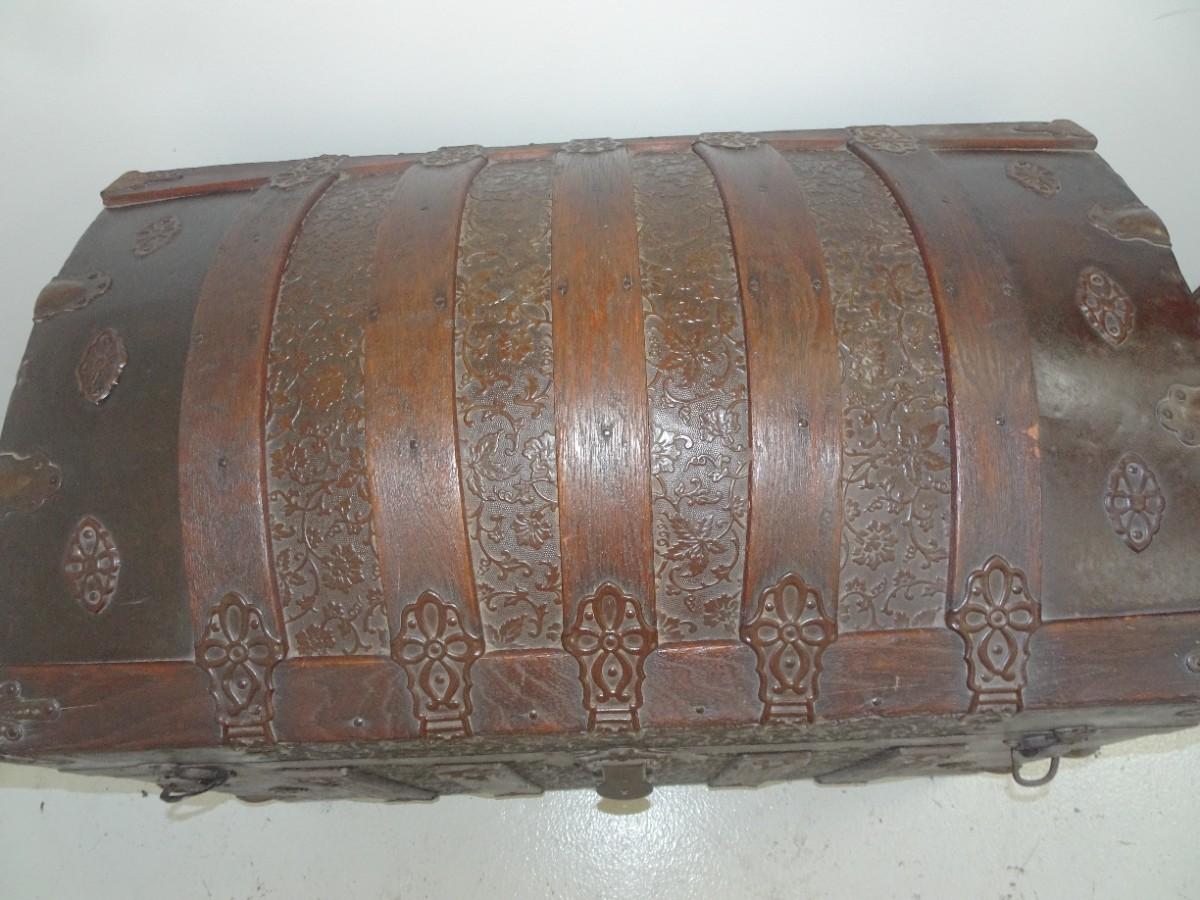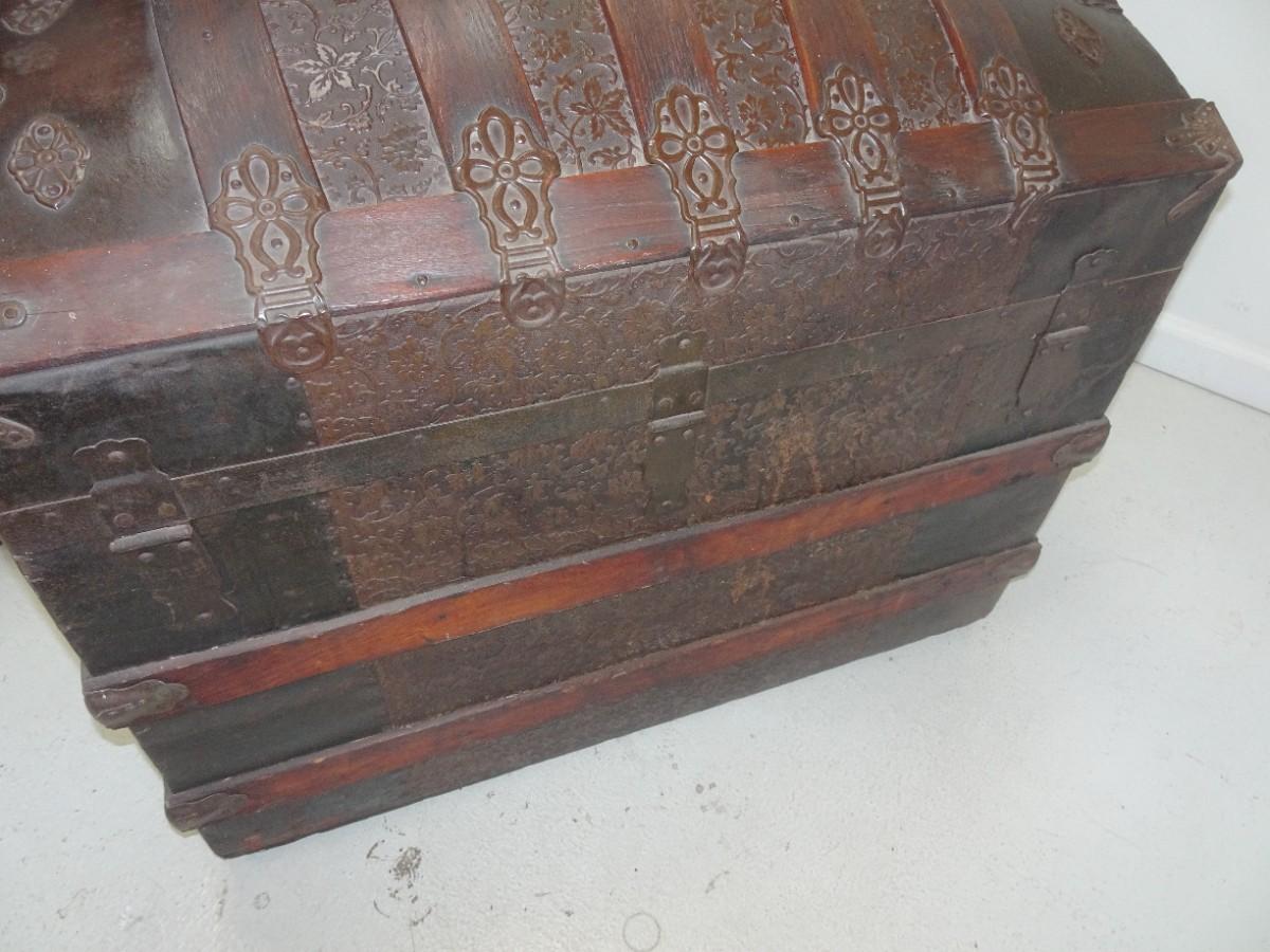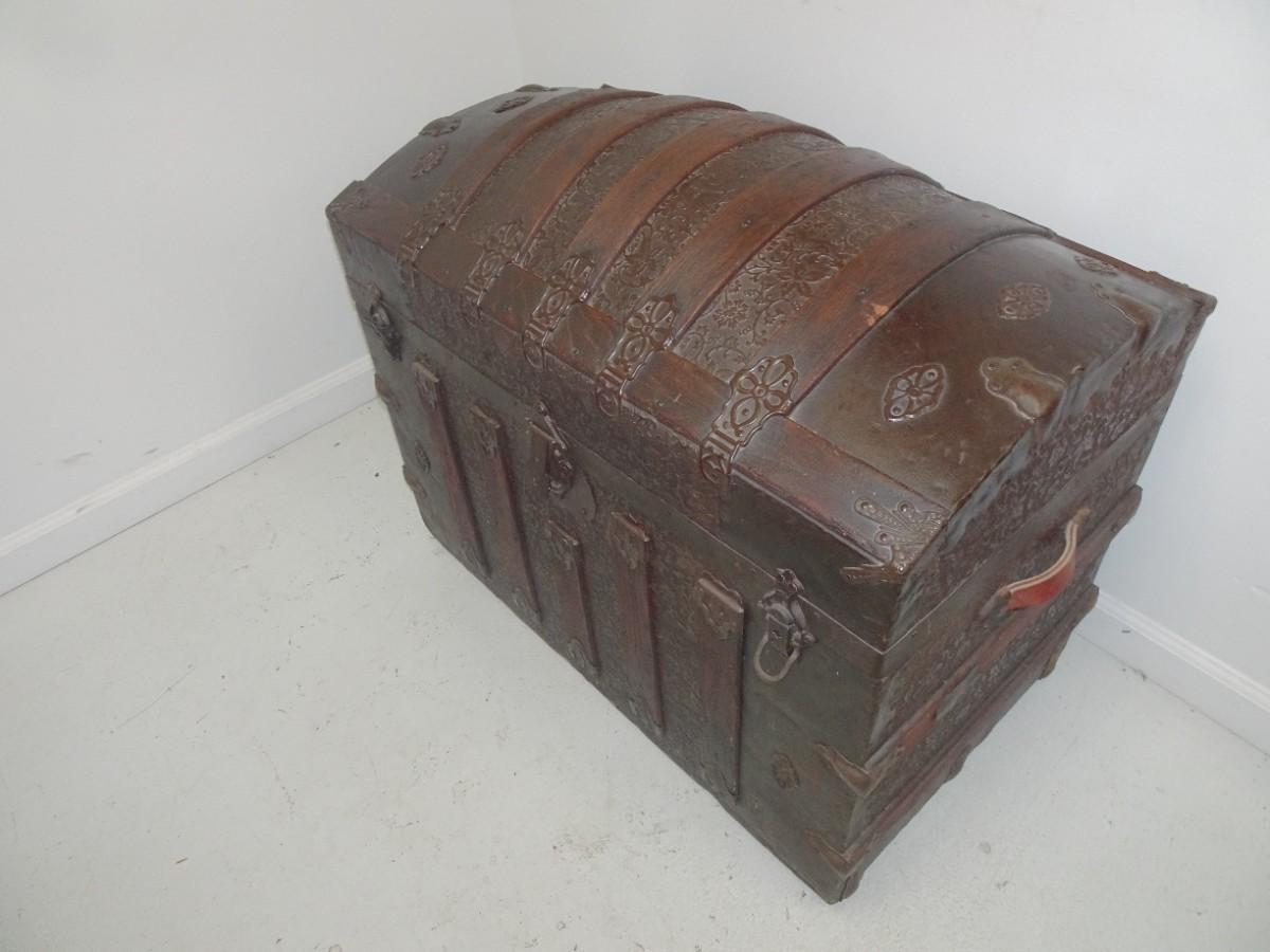 LOT 29. ANTIQUE HUMP BACK TRUNK