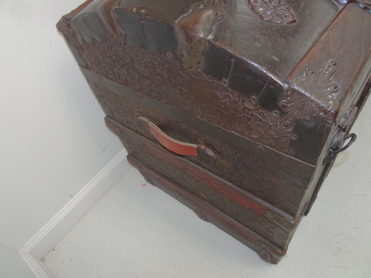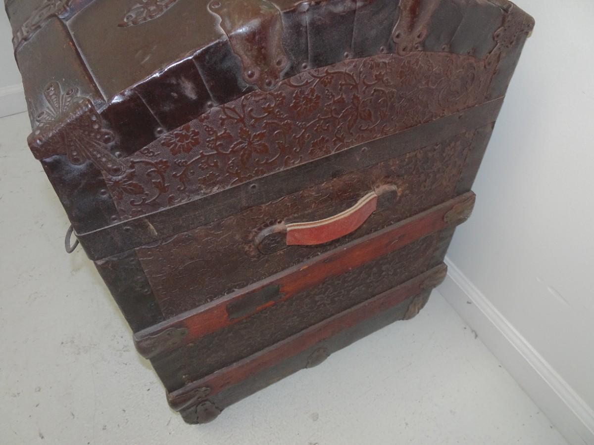 LOT 29 THIS TRUNK HAS BE RECONDITIONED AND APPEARS TO HAVE NEWER LEATHER HANDLES