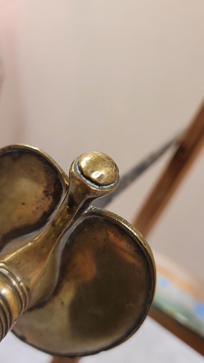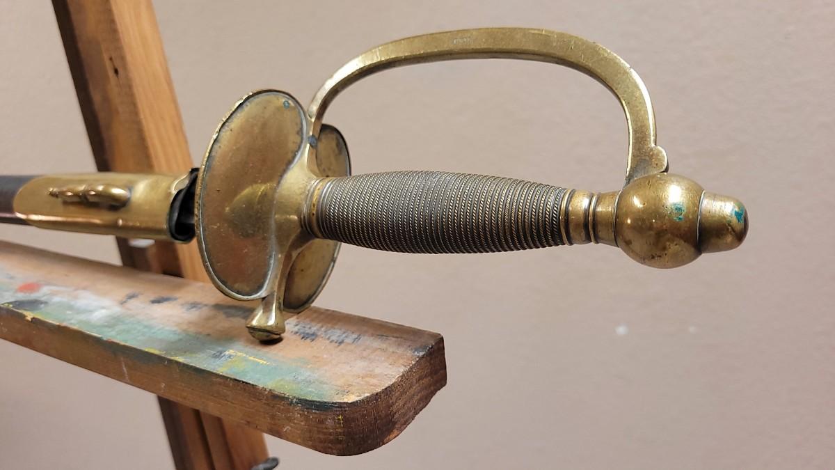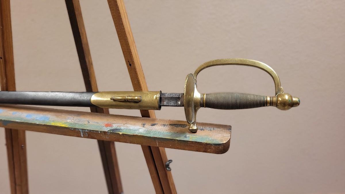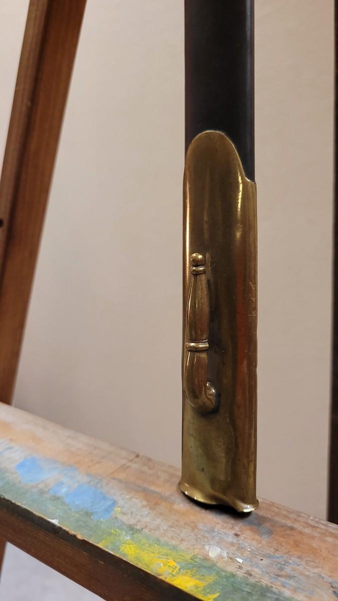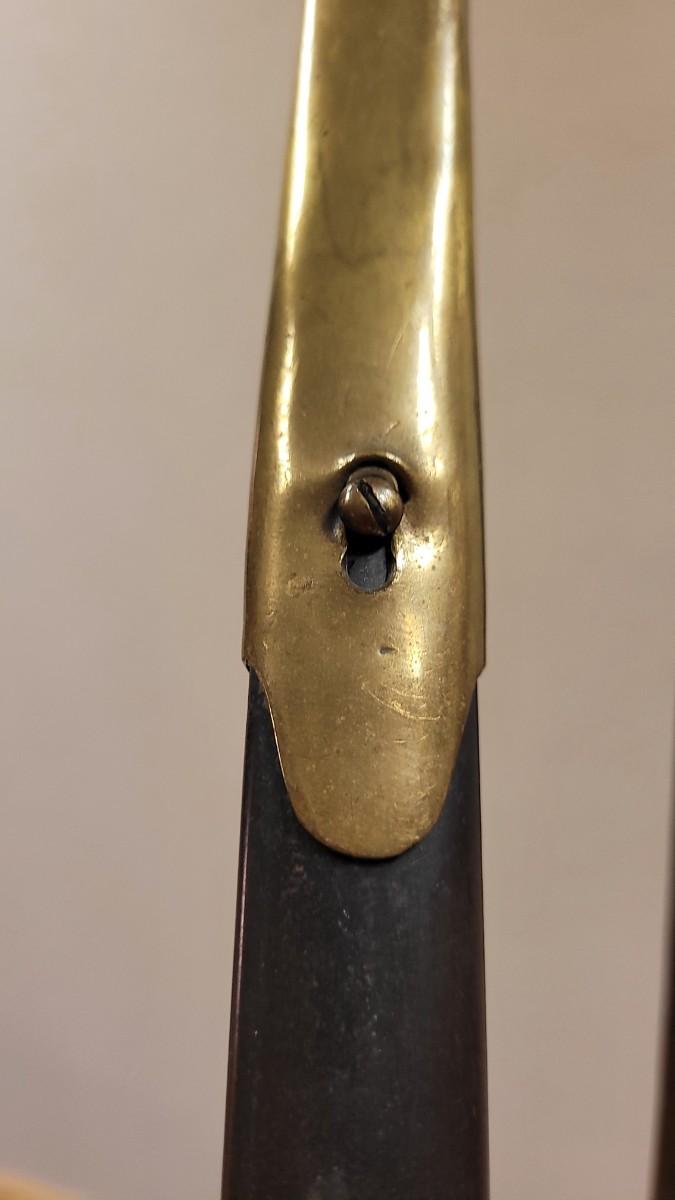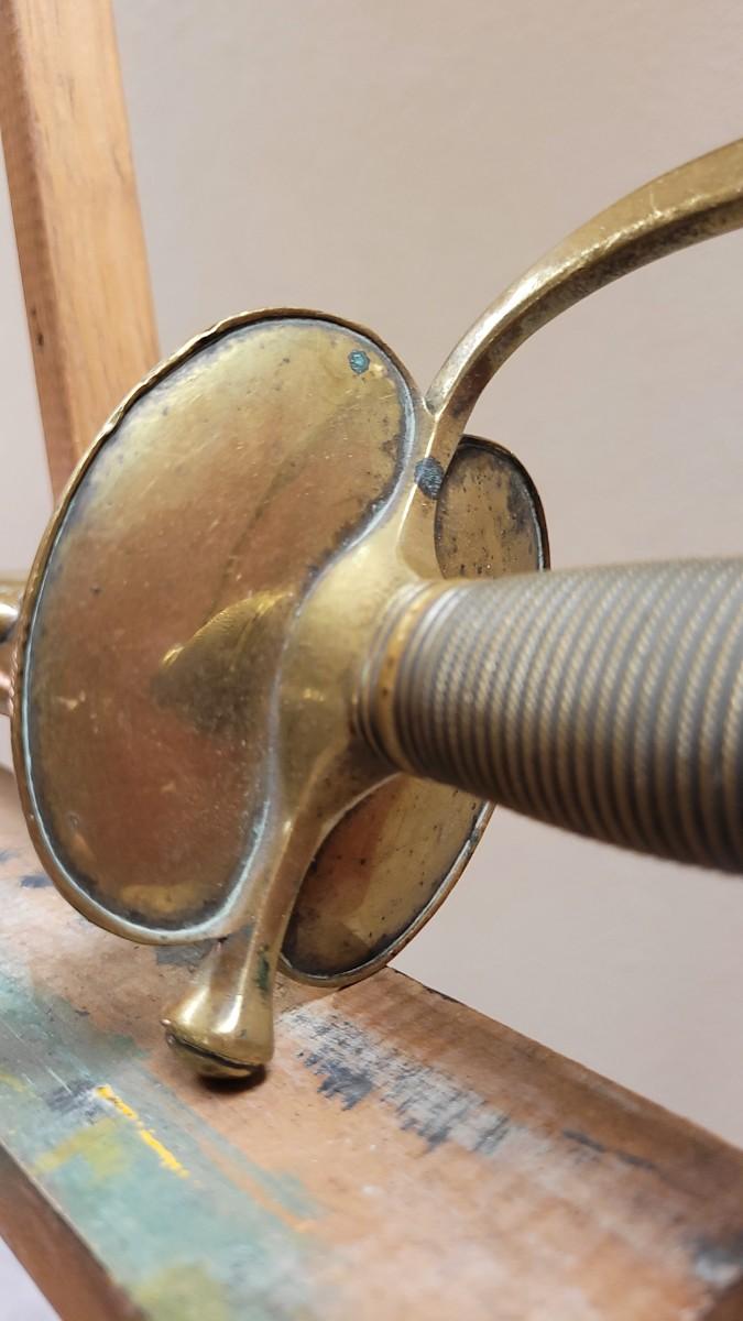 Hard to fond TRIPLE SIGNED example in impressive condition for age. This Has a Brass Basket Cross Guard and rare all Brass Handle. The Sword is signed by the maker "Emerson & Silver Trenton NJ" on One Side, and 1863 on the Other Side. The DFM marking is the Inspector's Mark from Dexter F. Mosman who Worked for Emerson & Silver from 1862 - 1864. The Markings on the Blade Have Wear From Age and are Partially Legible. A fine collector's piece.