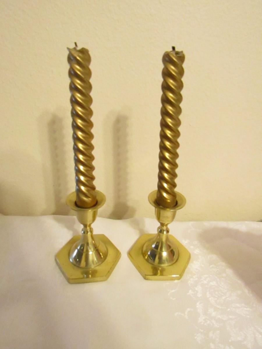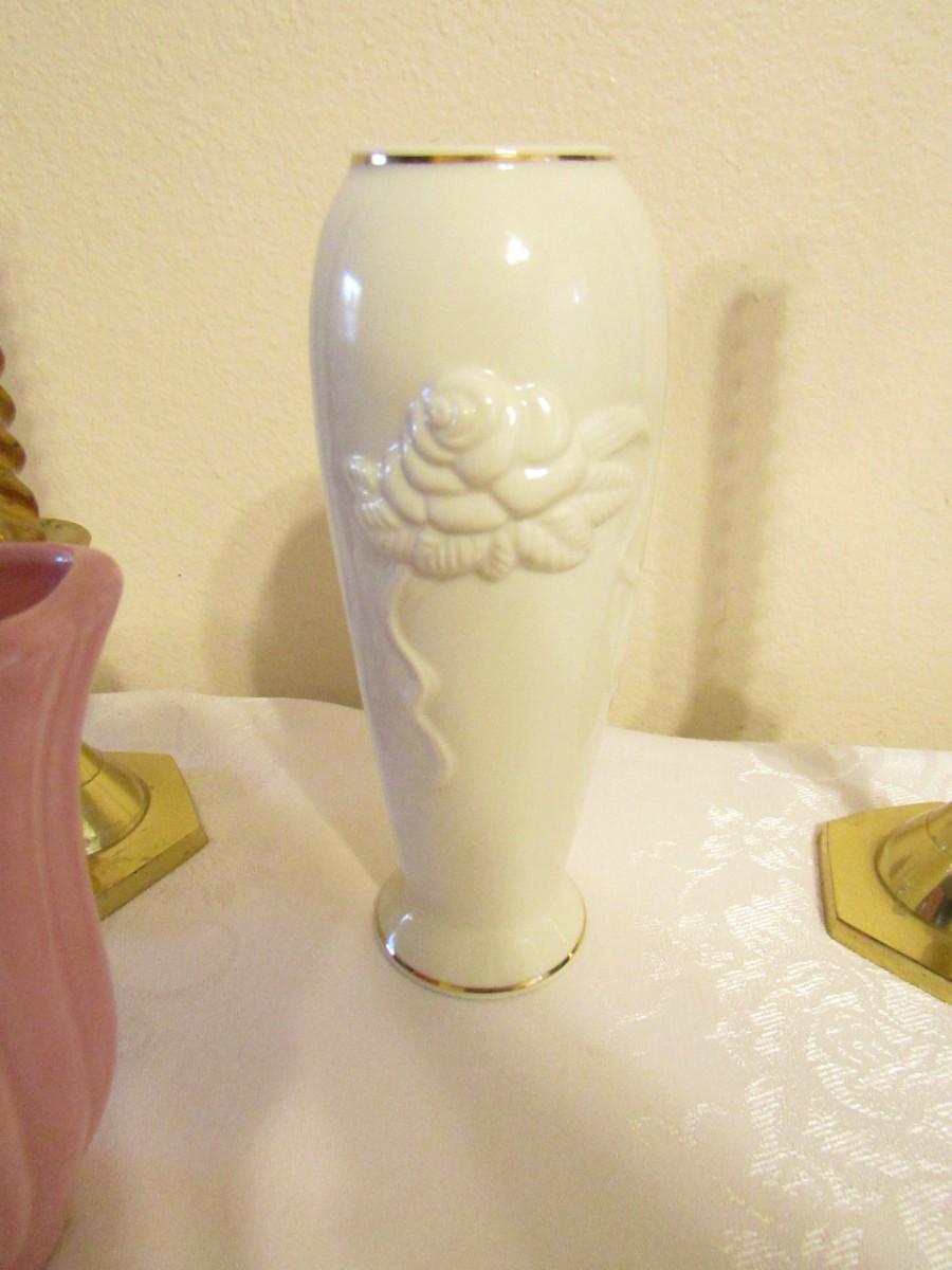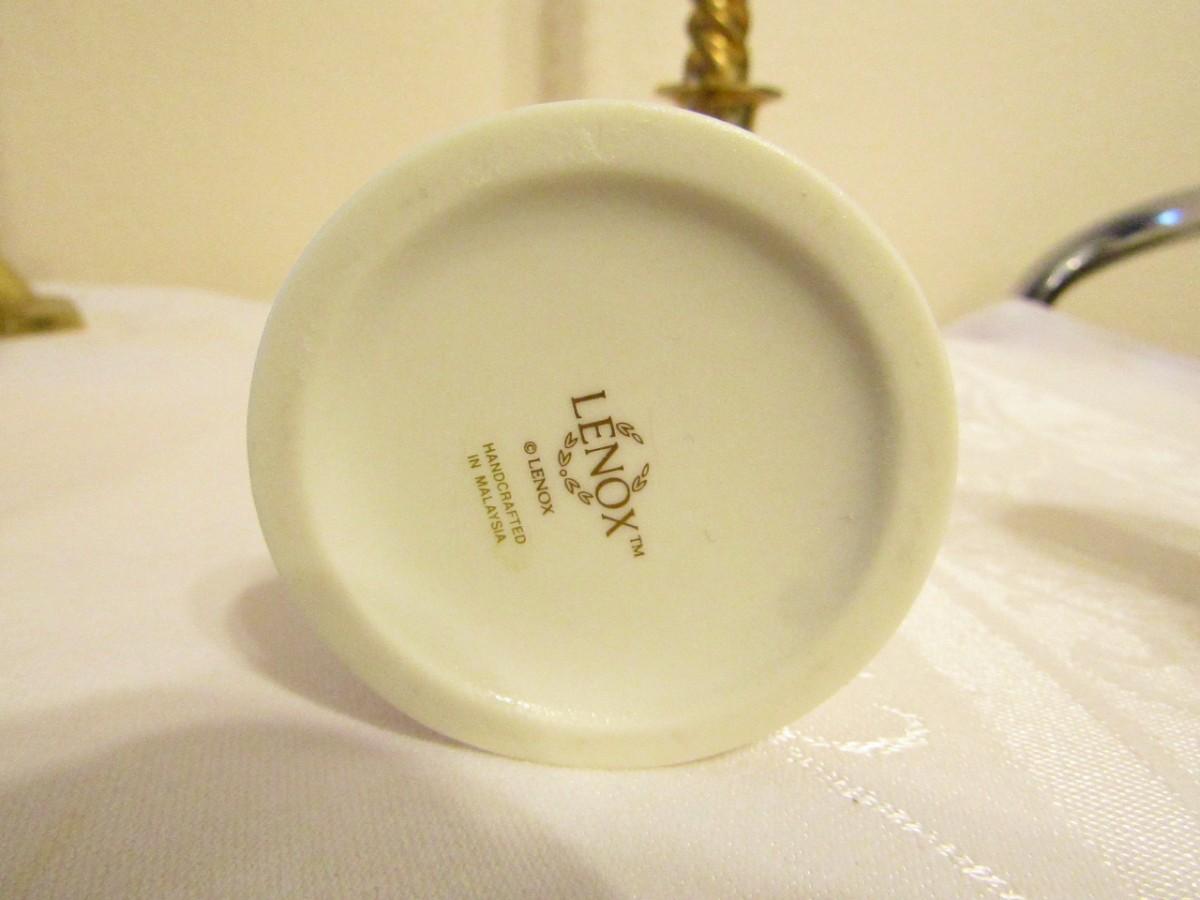 SIGNED SIOUX INDIAN CLAY VASE, LENOX PORCELAIN VASE, CERAMIC POT AND 2 MATCHING BRASS CANDLE HOLDERS
