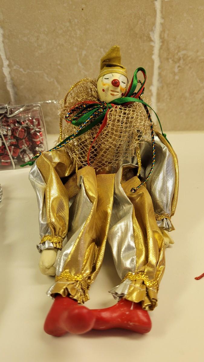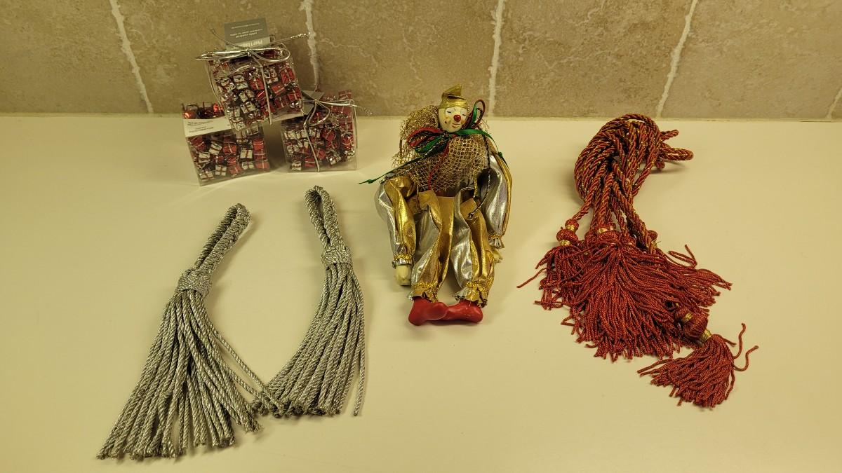 Lot 29: Vintage Christmas Clown, Tabletop Present Confetti, Tassels and Tassel Rope