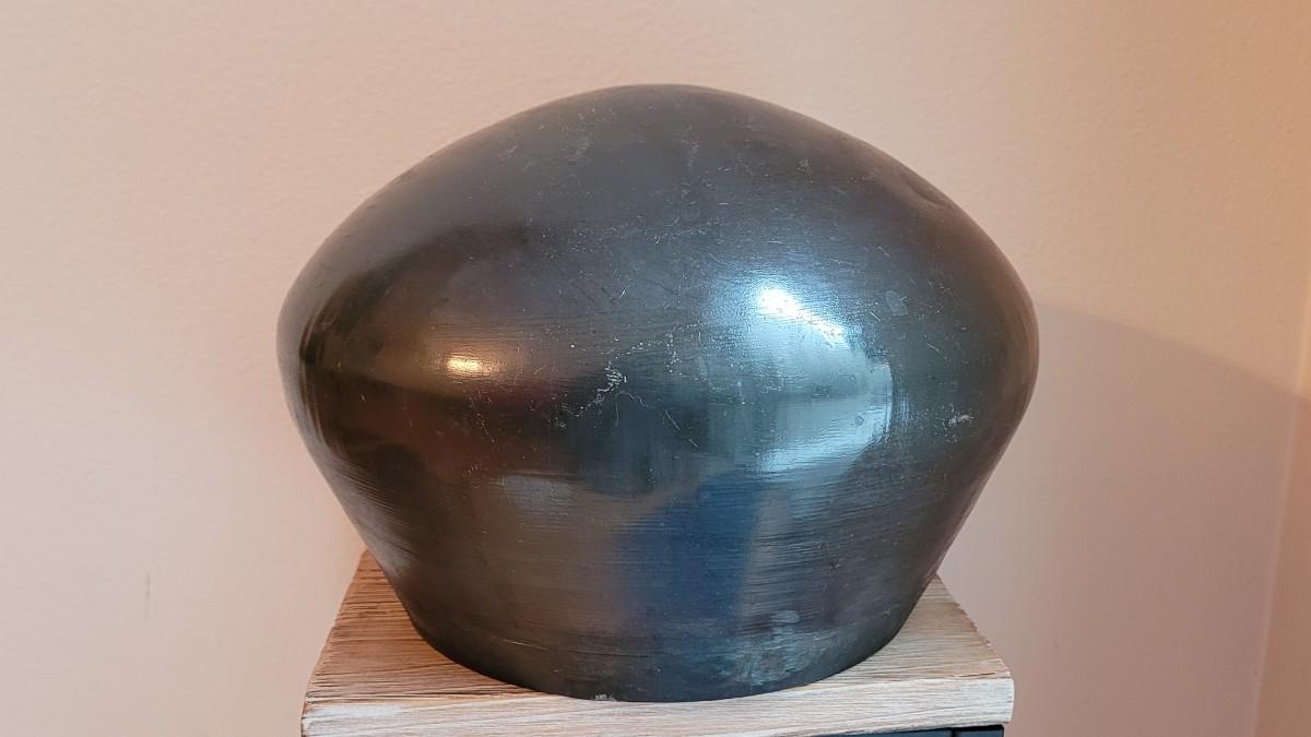 Nice condition. Does not have a dent, the lighting plus the forged metal makes it appear dented.