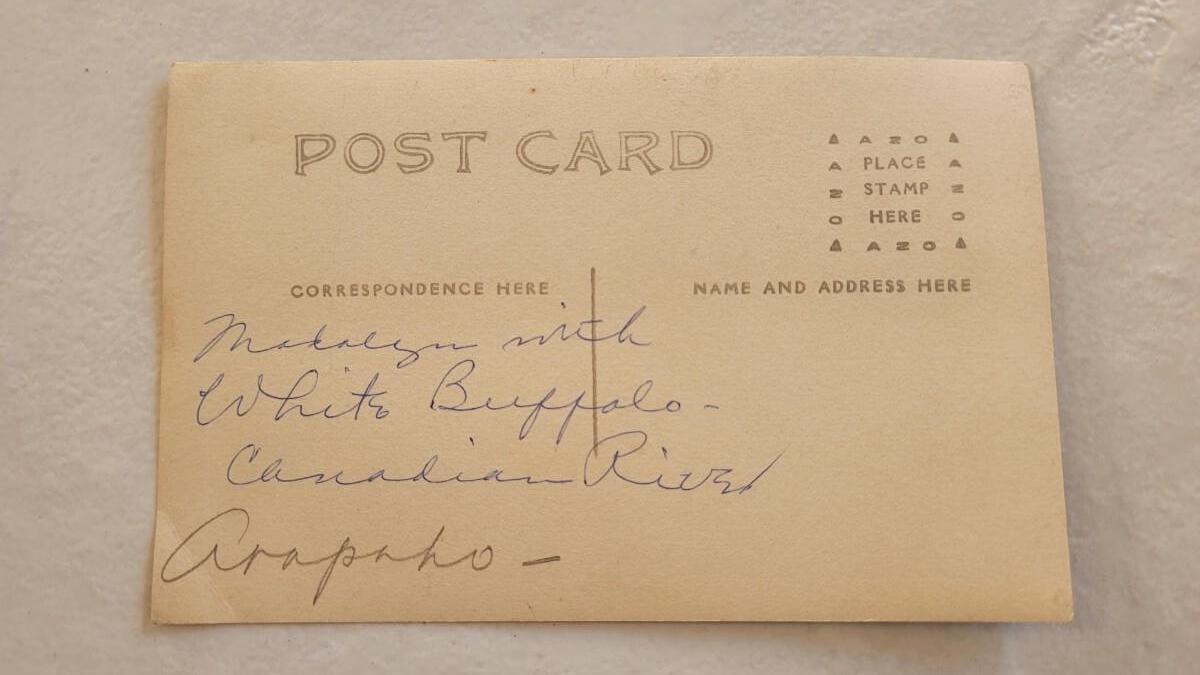 Madalyn knew White Buffalo personally. Included with the bow & arrows set is a real photo postcard of Madelyn Leyendecker riding on White Buffalo's back across a river and another of just White Buffalo☆☆☆