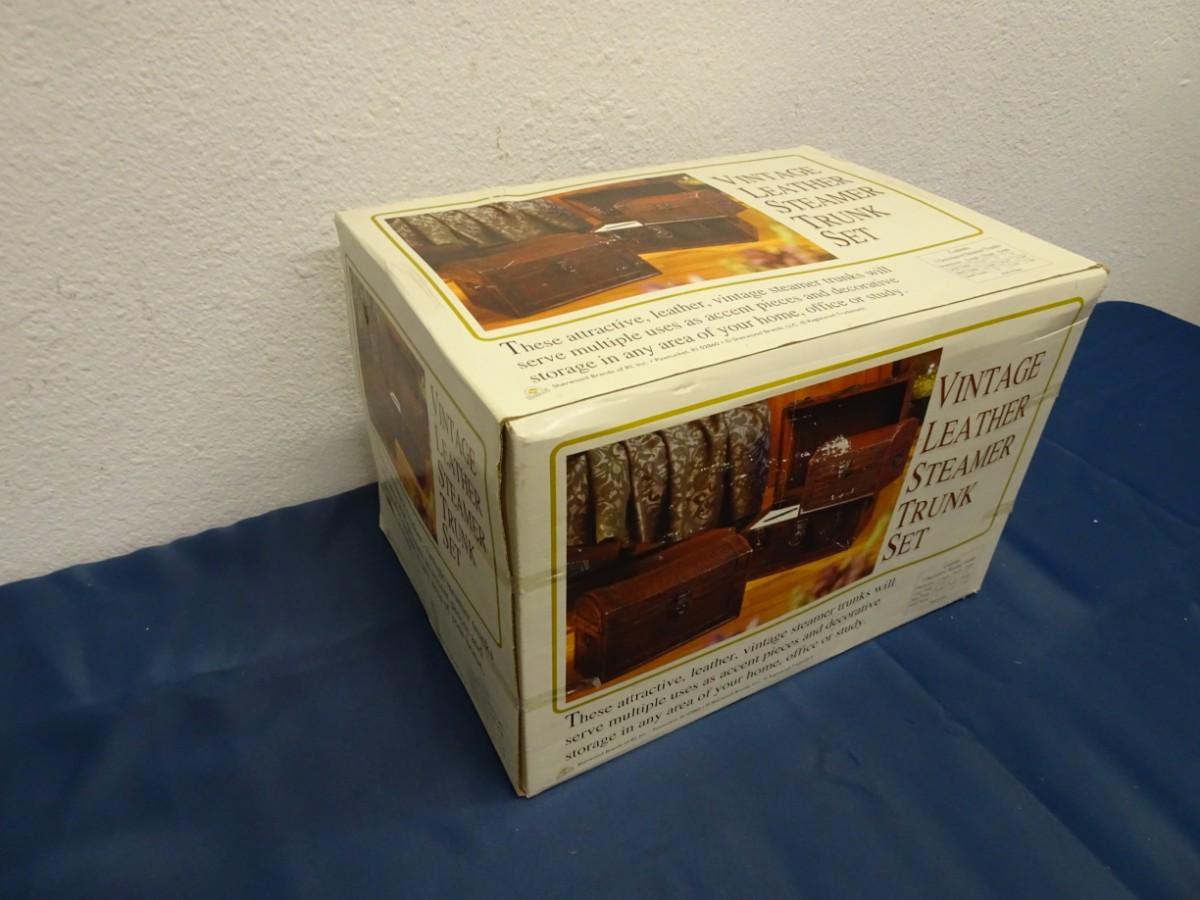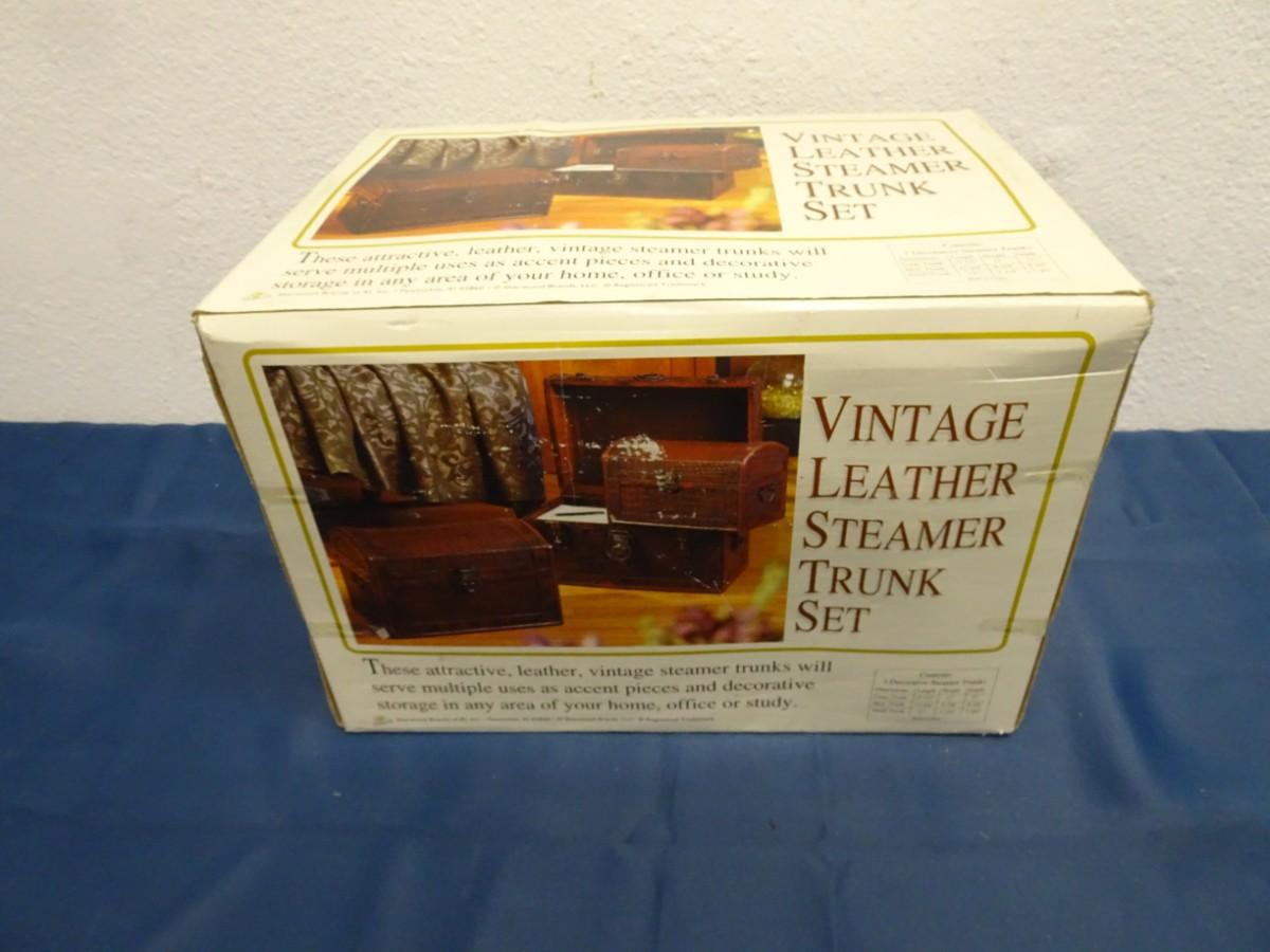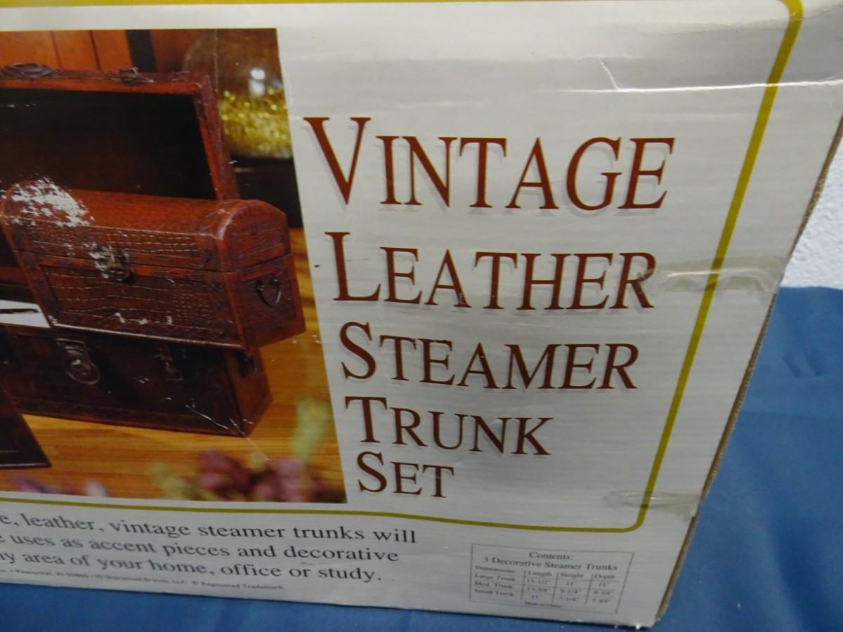 LOT 29 LEATHER MINI STEAMER TRUNK SET