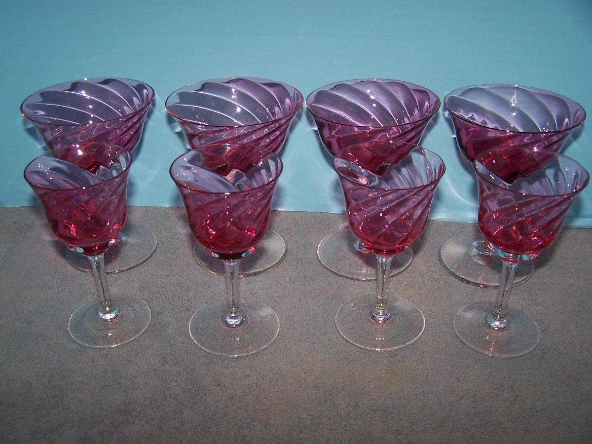 LOT 29 BEAUTIFUL VINTAGE 8 CRANBERRY SWIRL STEMWARE