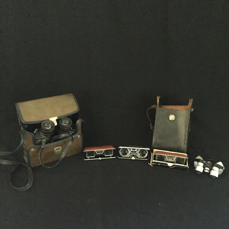 Great compilation of Binocular. Three Folding Binoculars, Nice Bushnell Binoculars(7x35) With Case,Selli compact Binoculars and One Case. Shipping Available