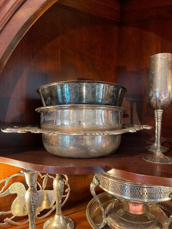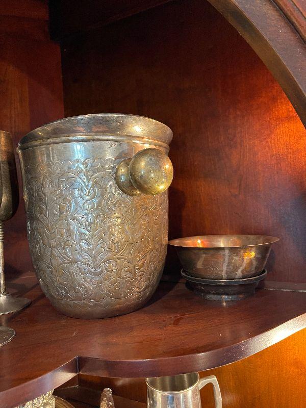Assorted Brass and Silver Items Including Brass Ice Bucket, Trays, Mugs, Candle Sticks, Trivets and much More!