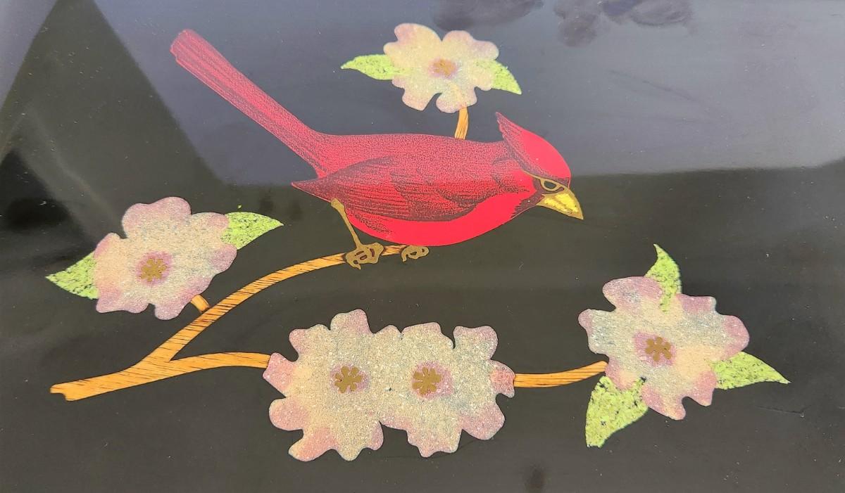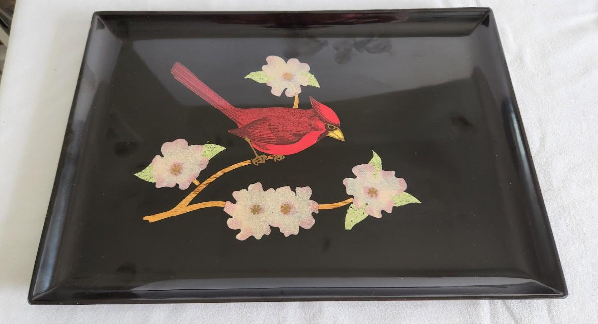 Lot #29  Great Mid Century Modern Couroc Tray with Red Bird