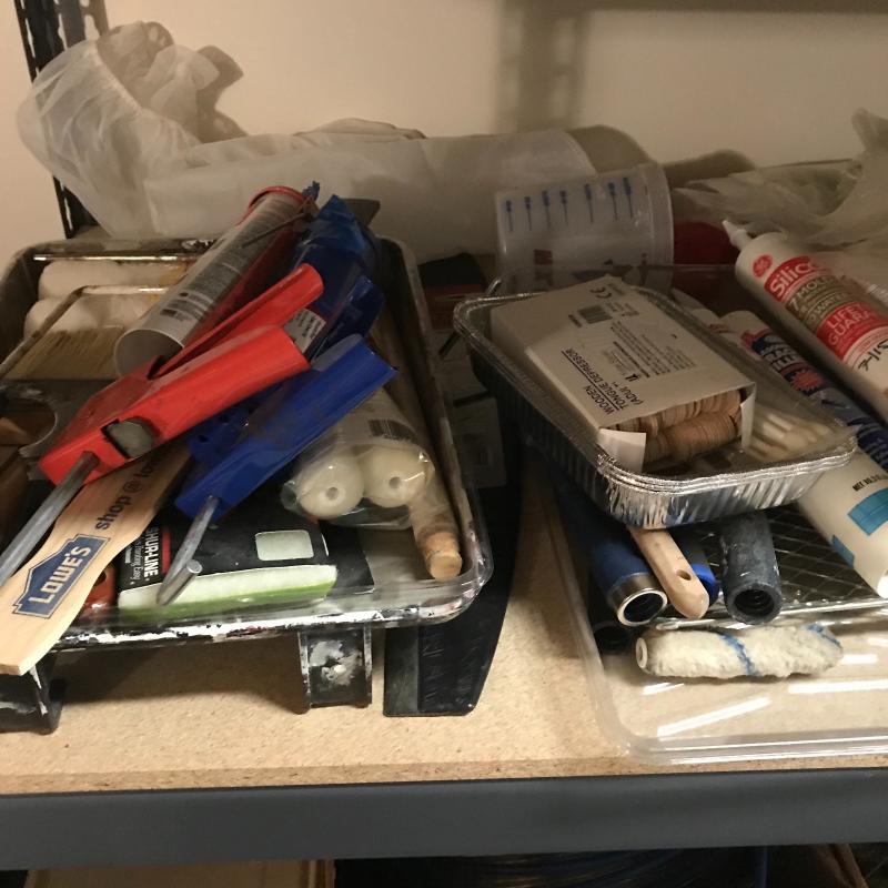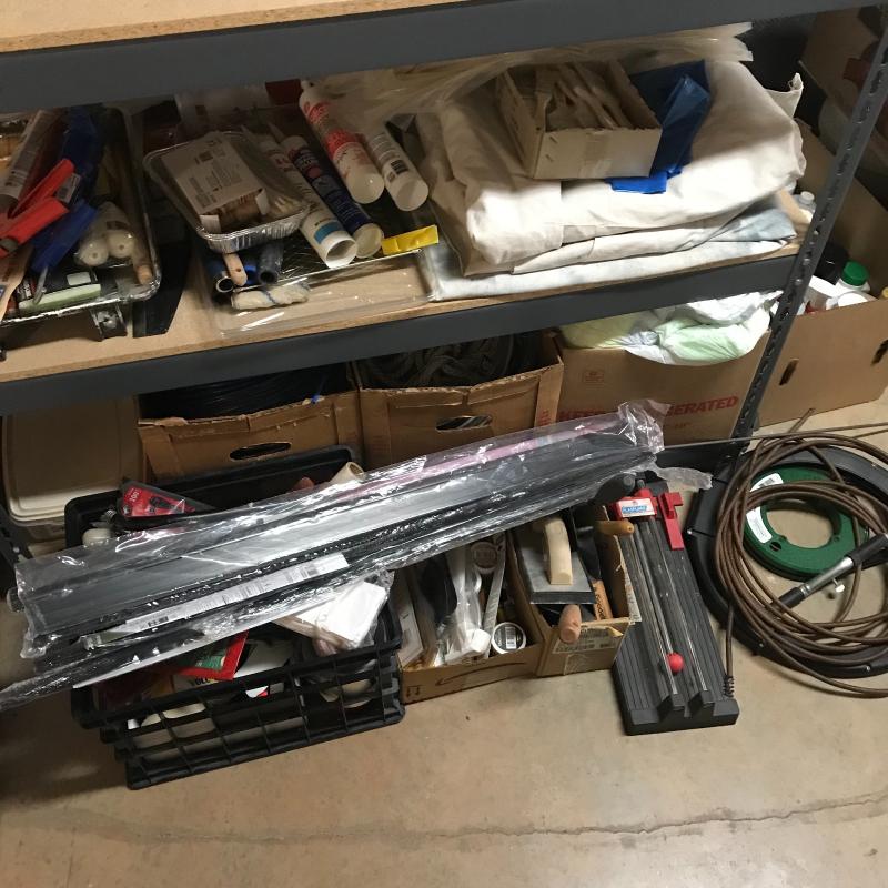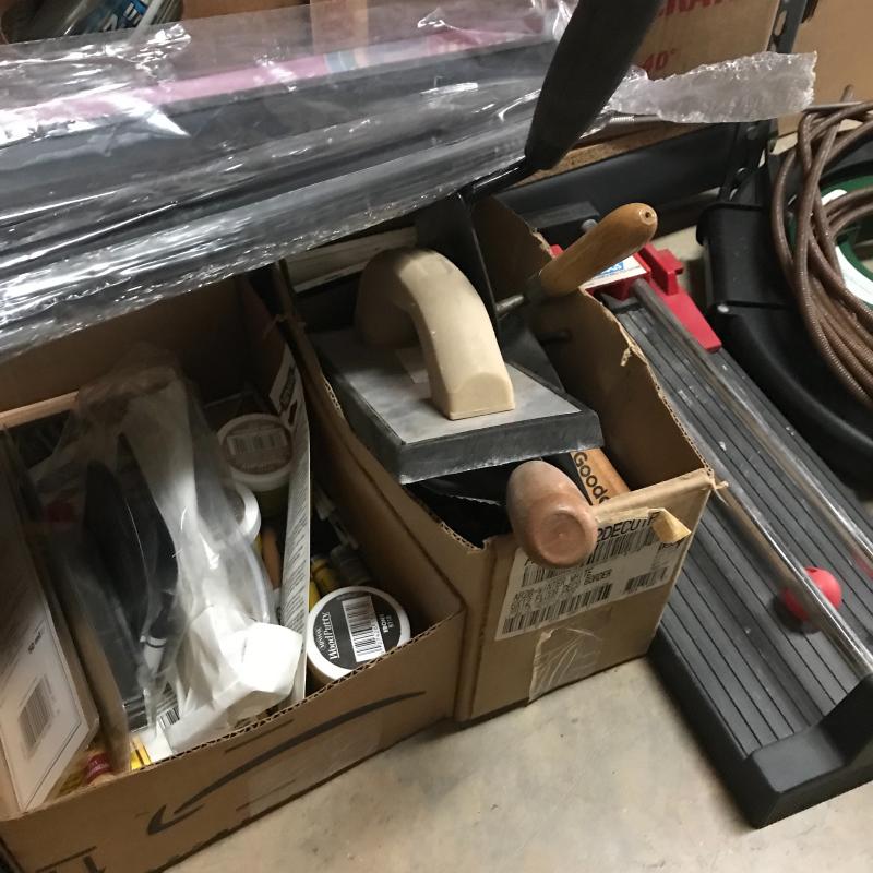 Supplies for your household to do list. Tile chopper, drain augers, paint supplies, rags, door skirts, tapes, twines, gloves, masonry tools, ropes and more. Lot is available for local pick up in Asheville, NC only.