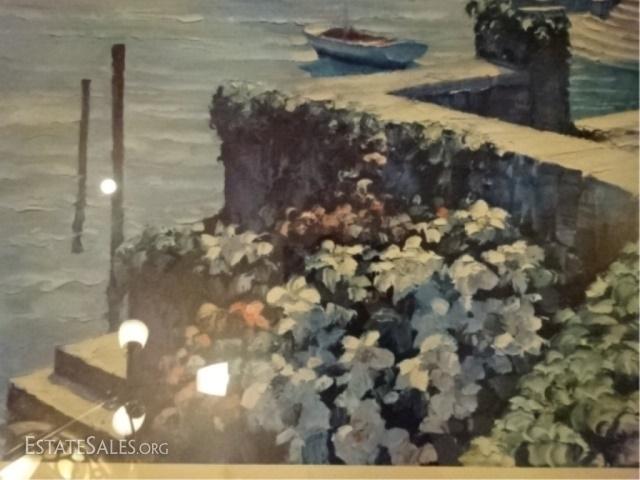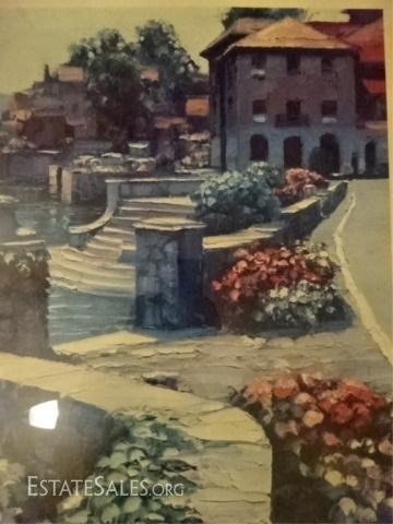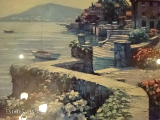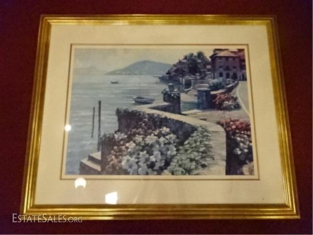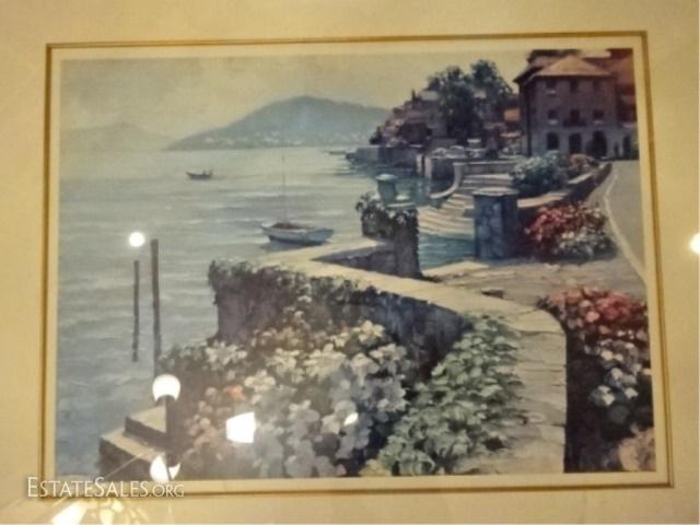 LOT 29: HOWARD BEHRENS LITHOGRAPH, ITALIAN LAKE COMO SCENE TITLED IL LAGO COMO, SIGNED IN THE PLATE LOWER LEFT, FRAMED AND MATTED, VERY GOOD CONDITION, FRAMED SIZE 43" X 35", SKU332