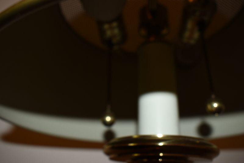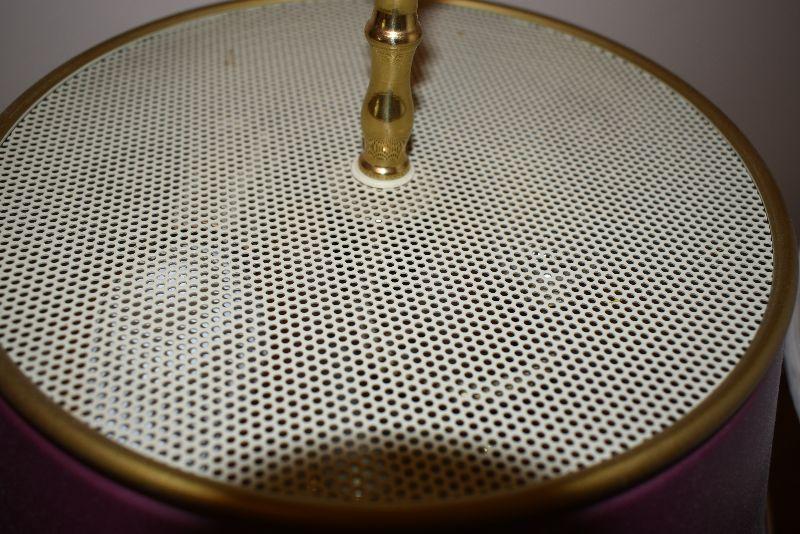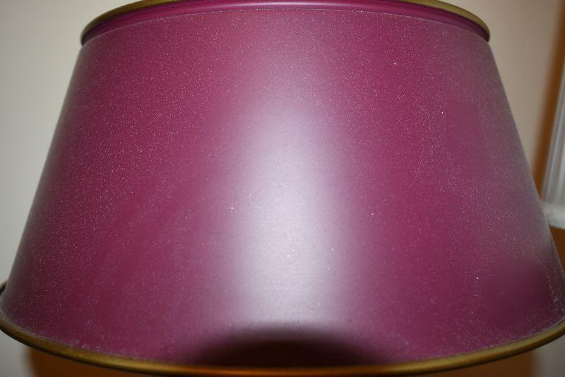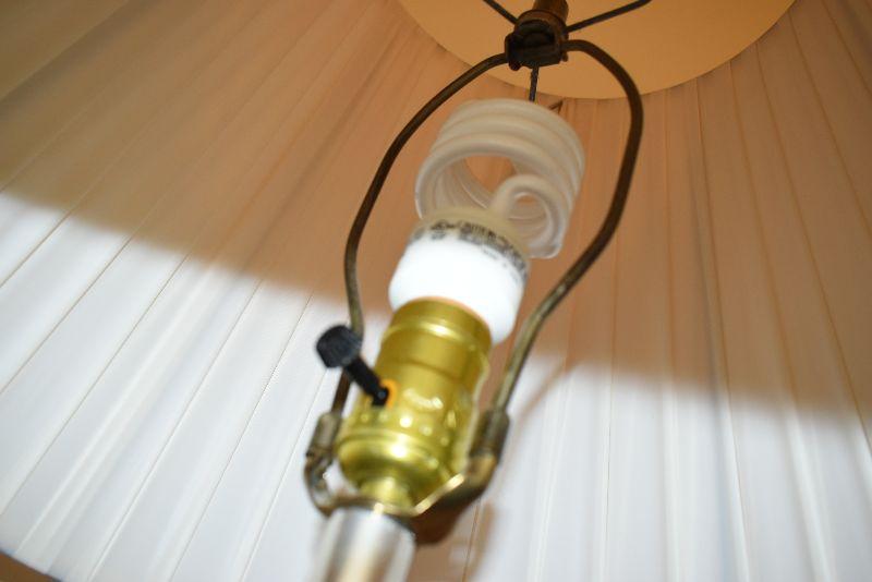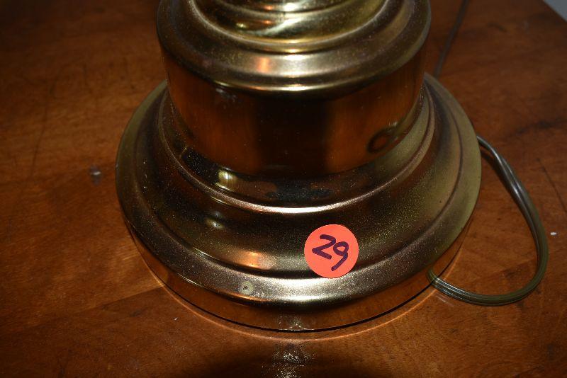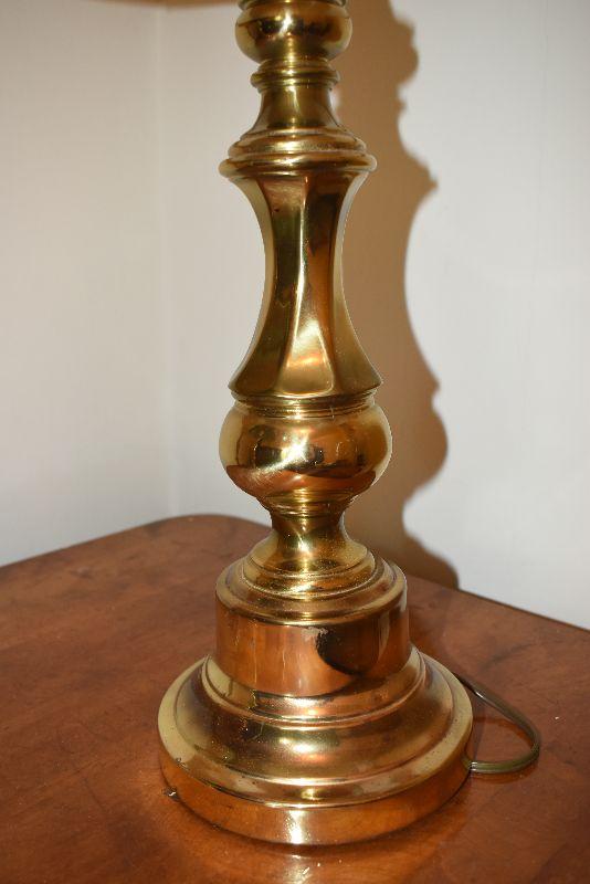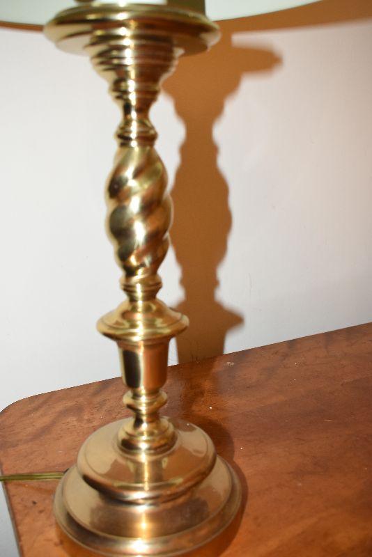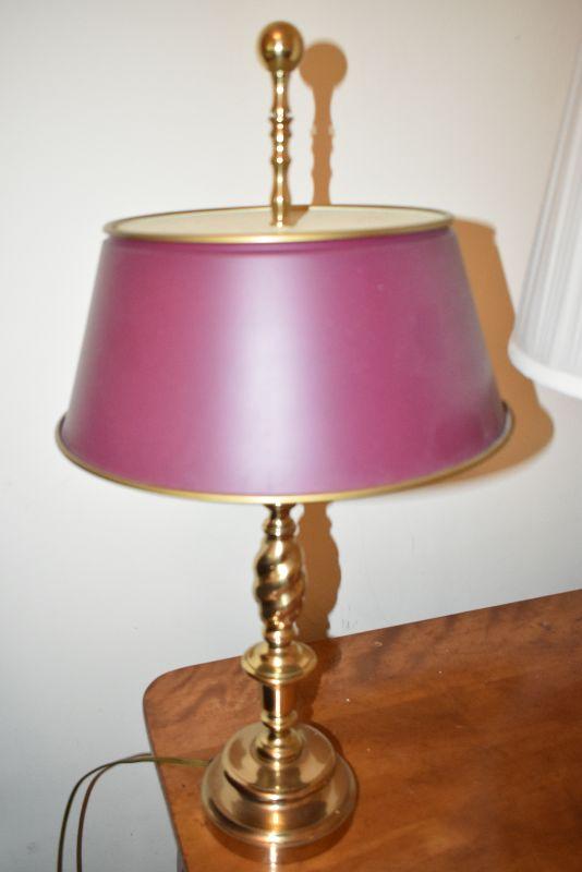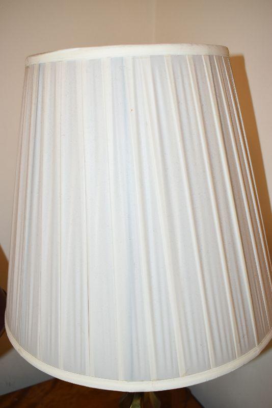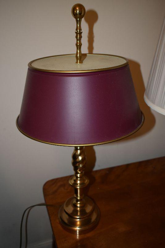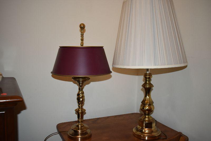 Brass lamp with metal shade, and brass lamp with cloth shade. Untested.