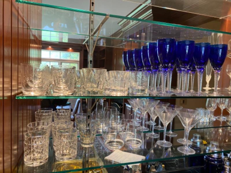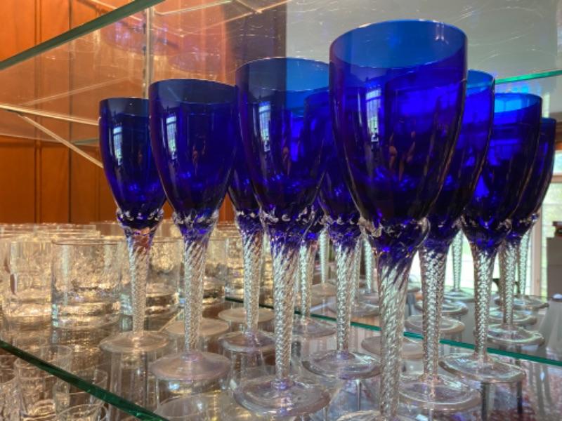 Large lot of Cobolt Blue Stemware with Ralph Lauren rocks glasses