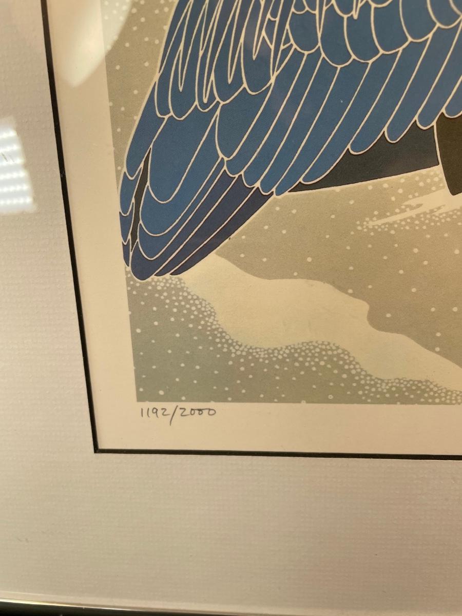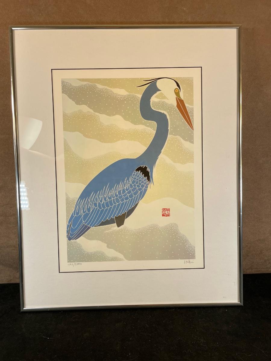 "Great Blue Heron" framed and matted lithograph is signed and numbered 1192/2000 and measures 16" X 20" Framed in a thin, metal frame with plexiglass. An unframed version of this print just sold on eBay for $127,