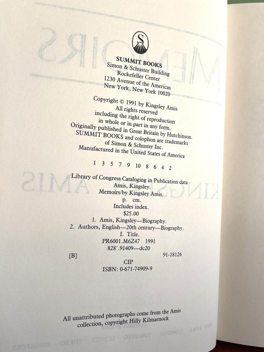 LOT 29 - Memoirs - Kingsley Amis - Inscription by Herb Caen to David