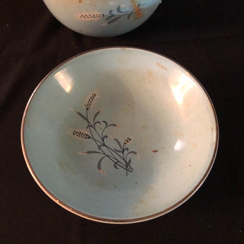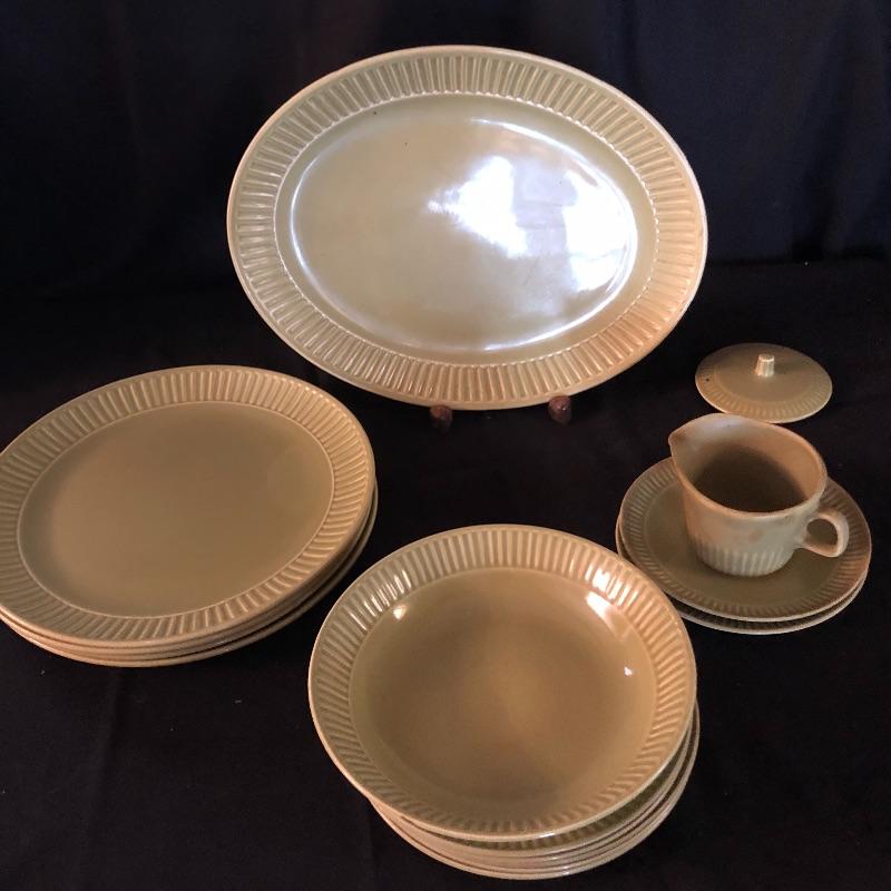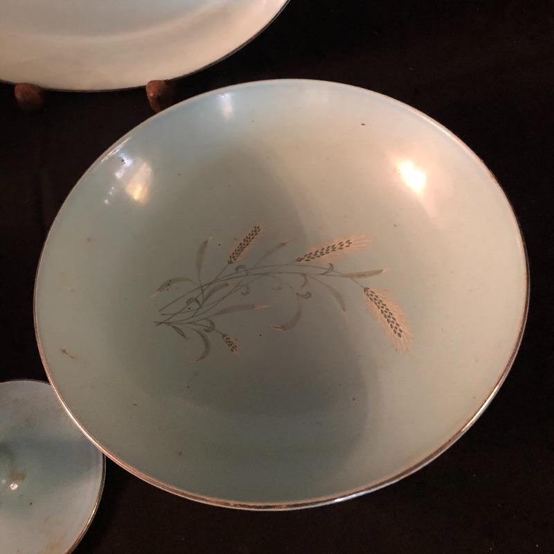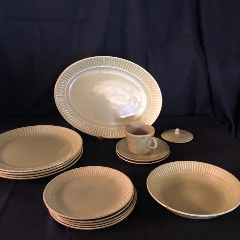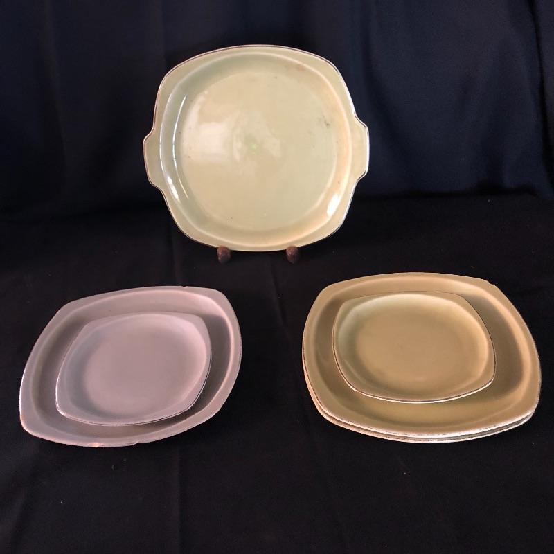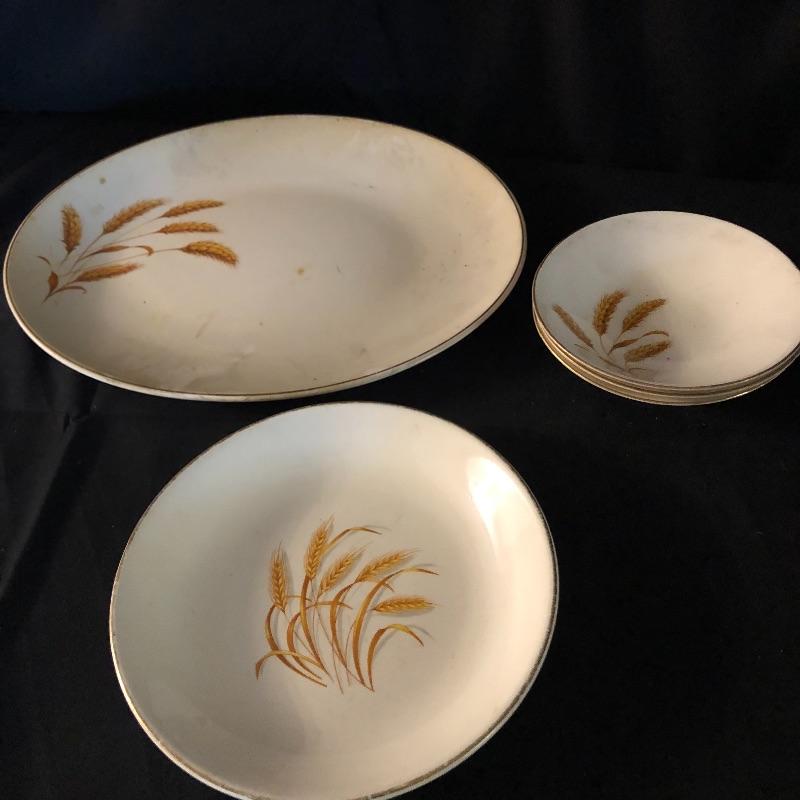 This lot has a little bit of everything! The blue wheat dish set has a platter, serving bowl, tea pot without lid and six small bowls. The green dish include one platter, one small bowl, four dinner plates, five salad plates, two saucers and a creamer. Miscellaneous dishes include seven plastic dinner plates, wheat dishes and so much more! Local pick up only.