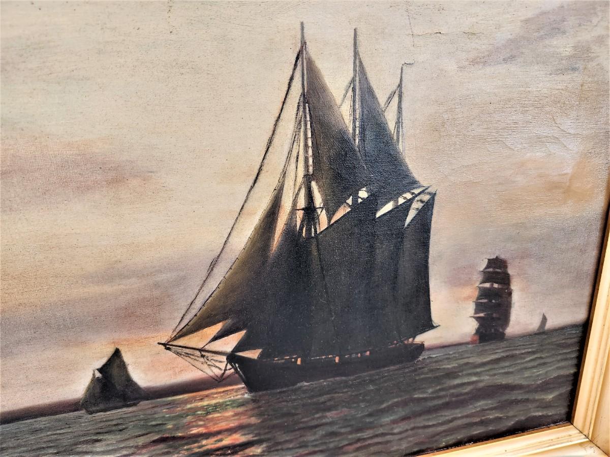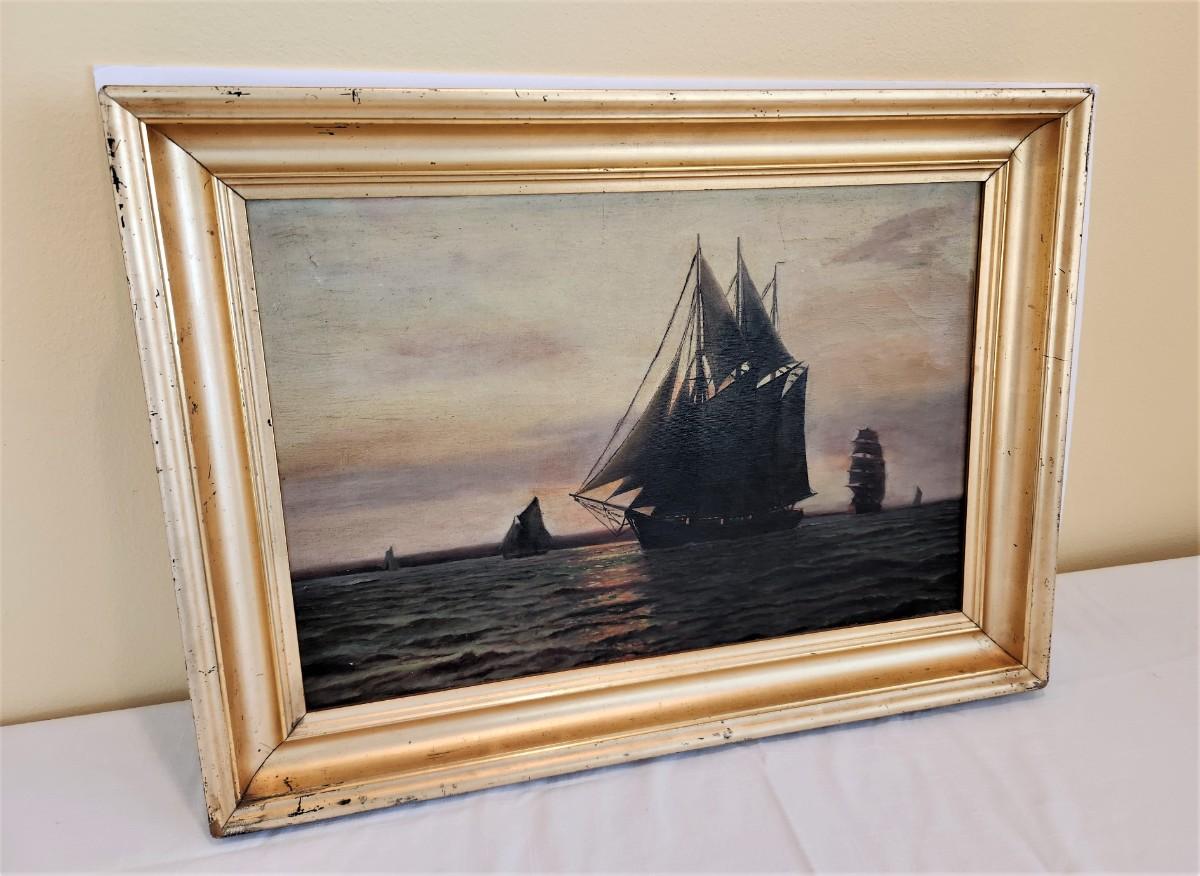 Lot #29  Oil on Canvas - Sailing Ships - probably late 19th Century