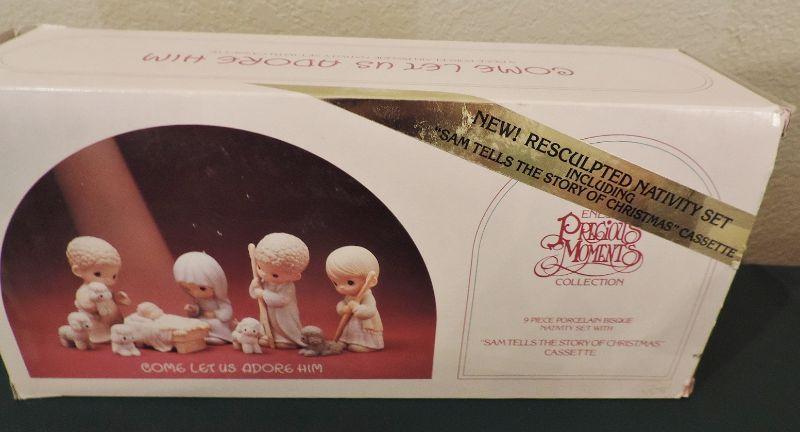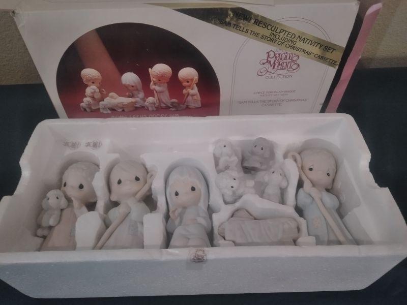 PRECIOUS MOMENTS CHRISTMAS COLLECTIBLES ANGEL WITH A BELL, AND A WONDERFUL NATIVITY SET! BOTH ITEMS INCLUDED IN THIS AUCTION.