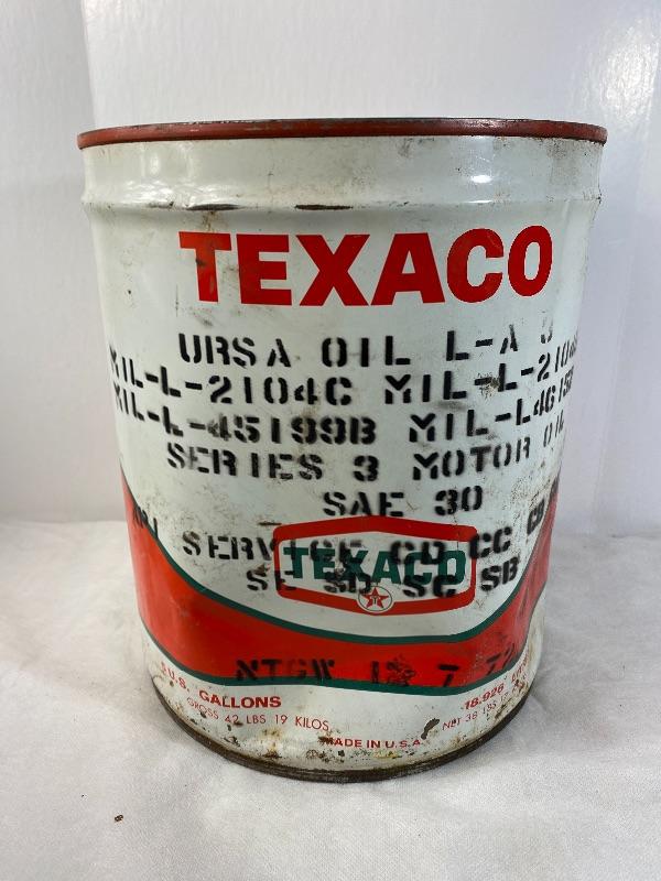 Lot# 29 s Metal 5 ga. Texaco Oil Can with Pour Spout