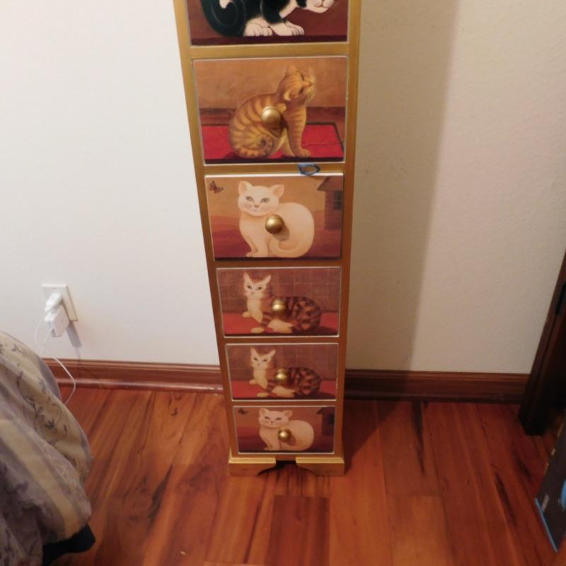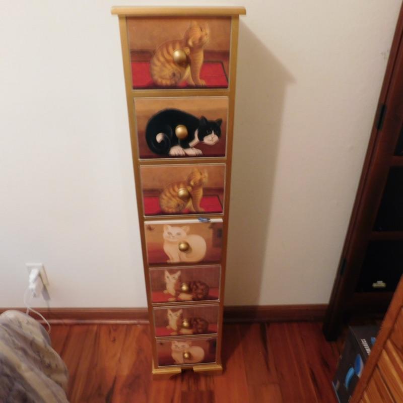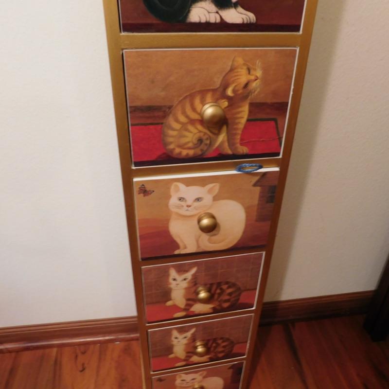 Seven Drawer Chest With Cats On drawer fronts W11" D 9.5" H50"