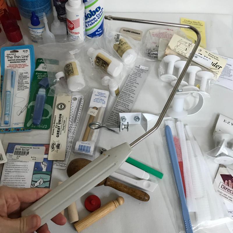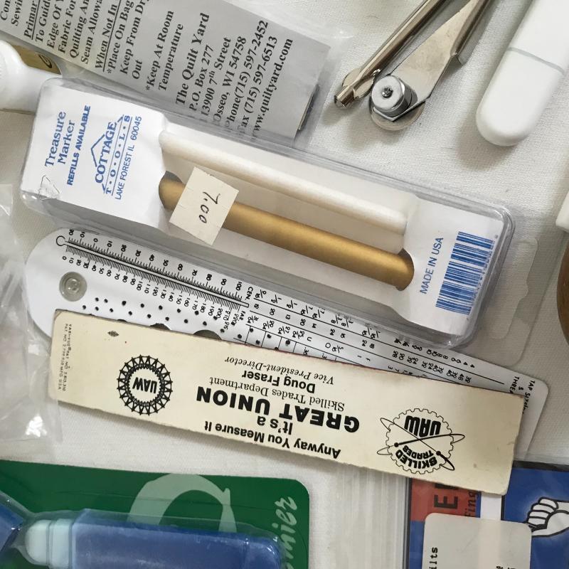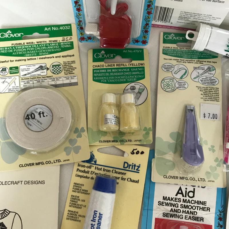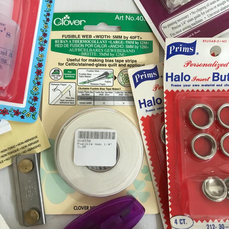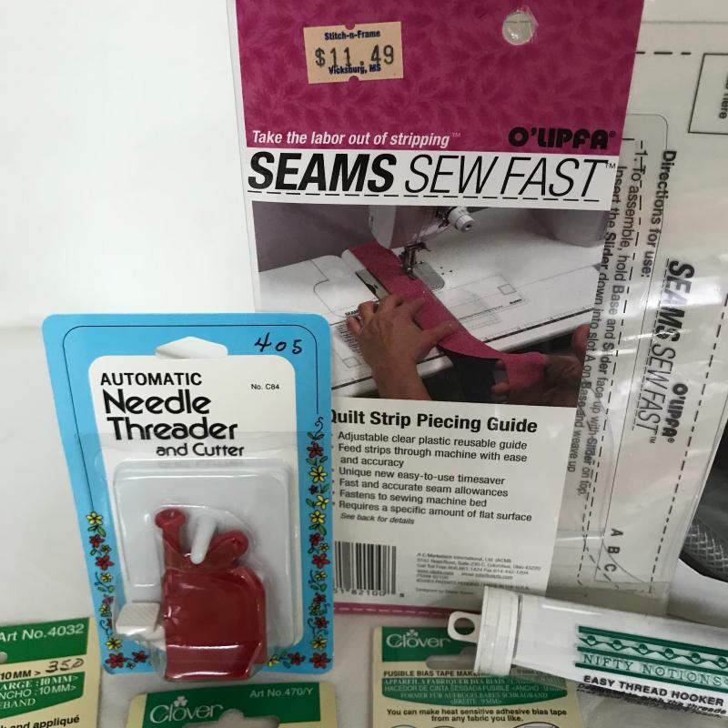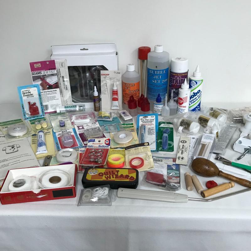 This large lot contains sewing essentials of all kinds, many are brand new, others cost $15 or more and are still in packaging. From EZ Winder bobbins and Curve Master presser feet to Glue-Baste-It and fusible webbing, you’ll find dozens of useful items for every seamstress. See pics. Shipping available.