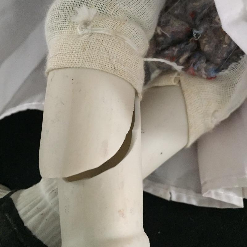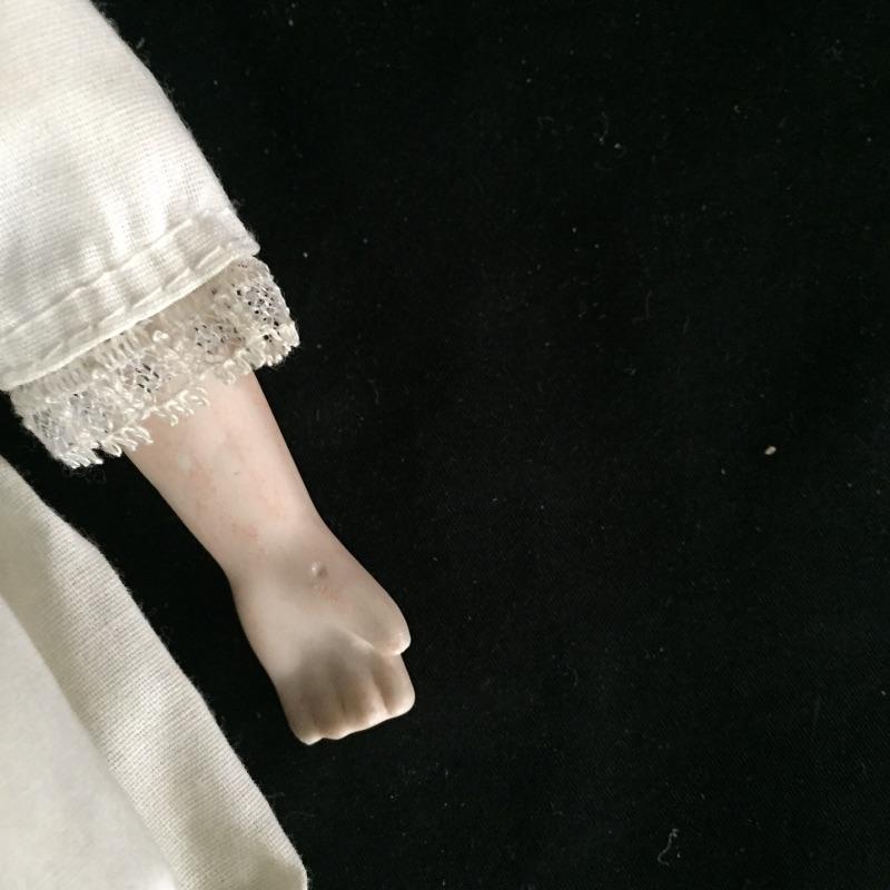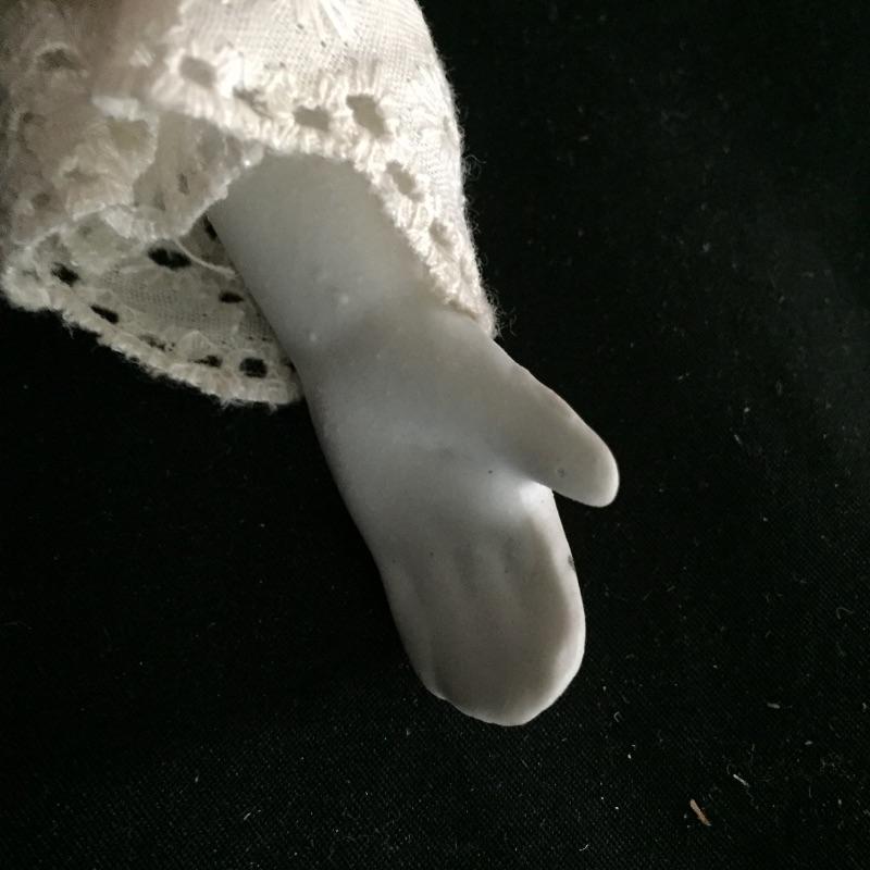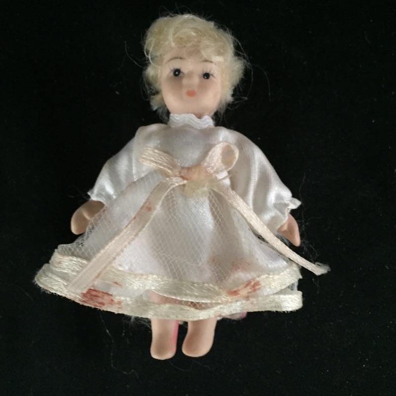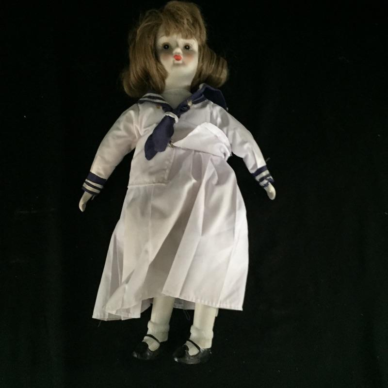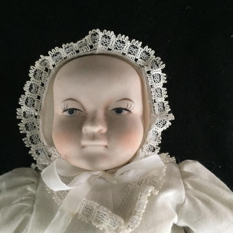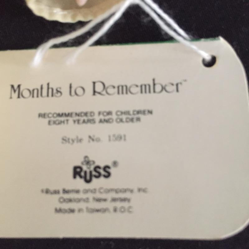 Collection of six porcelain dolls. Start or add to your collection of porcelain dolls. Yellow dressed one has tags of "months to remember". By Russ Largest doll measures 16.5” tall. One doll has broken leg but when put in place is not noticeable (see pix).