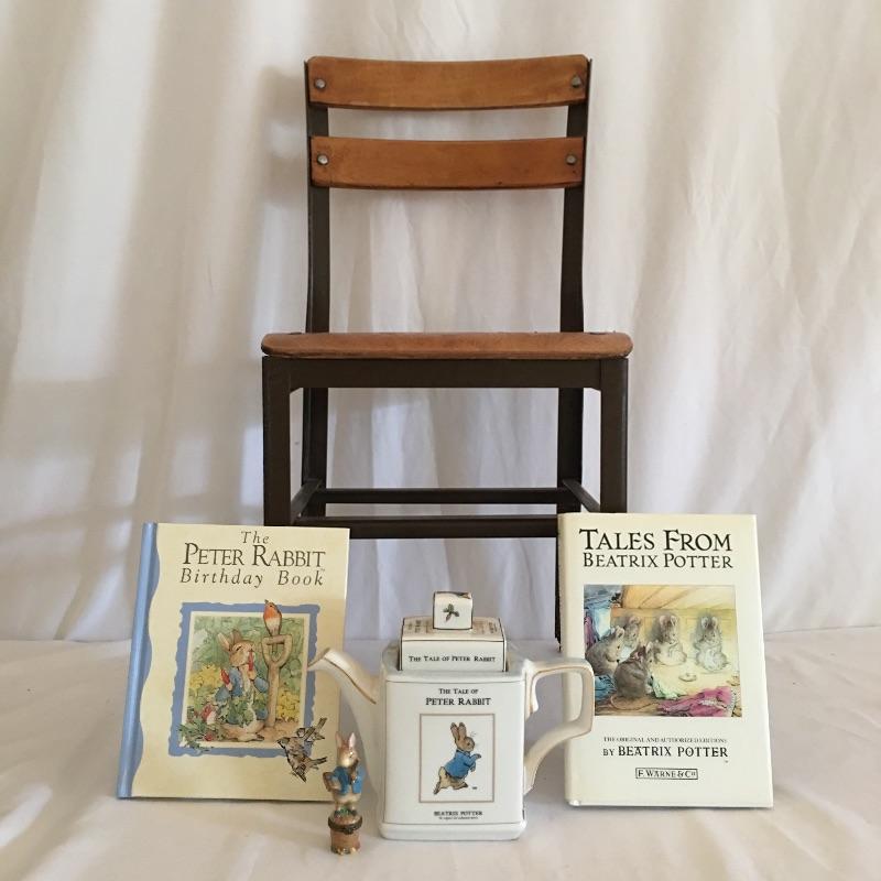 Bring these past classics to the child in your life! Lot highlights include Tales from Beatrix Potter book with Peter Rabbit Birthday books! A Peter Rabbit tea pot and porcelain figurine complete with trowel and carrot! The teapot has some stains inside that may be able to be cleaned. Lastly, a charming children’s chair. Child’s chair measures 11.5” x 11.5” x 24” with a 13” seat height.