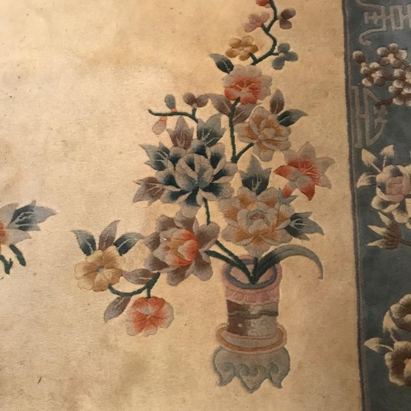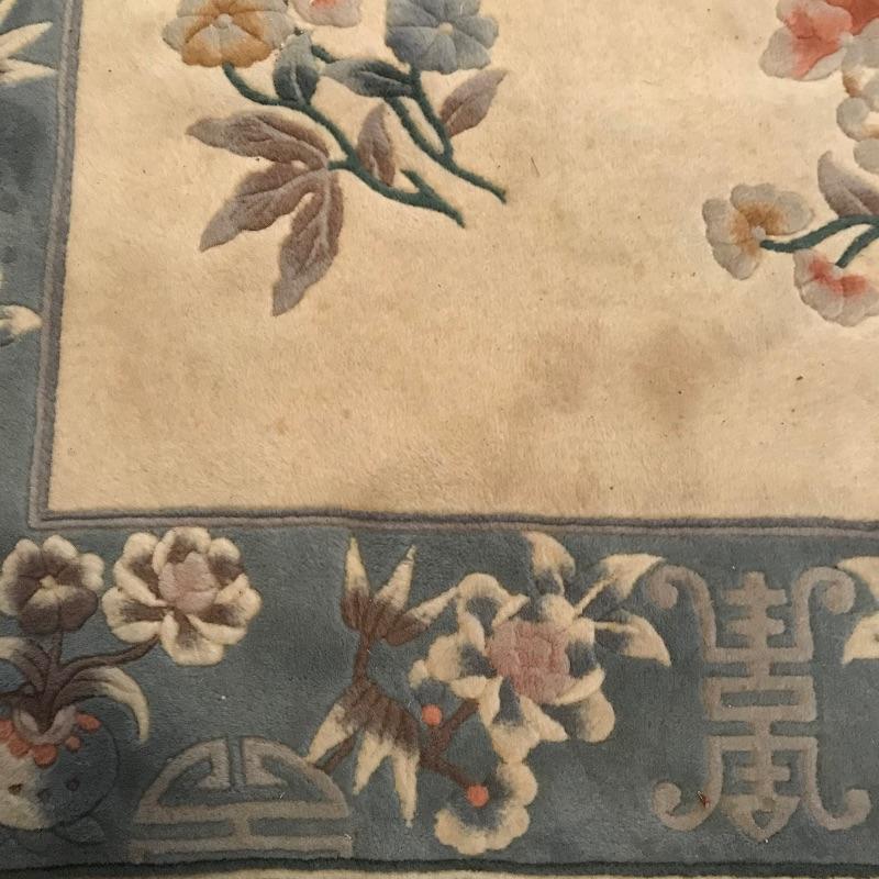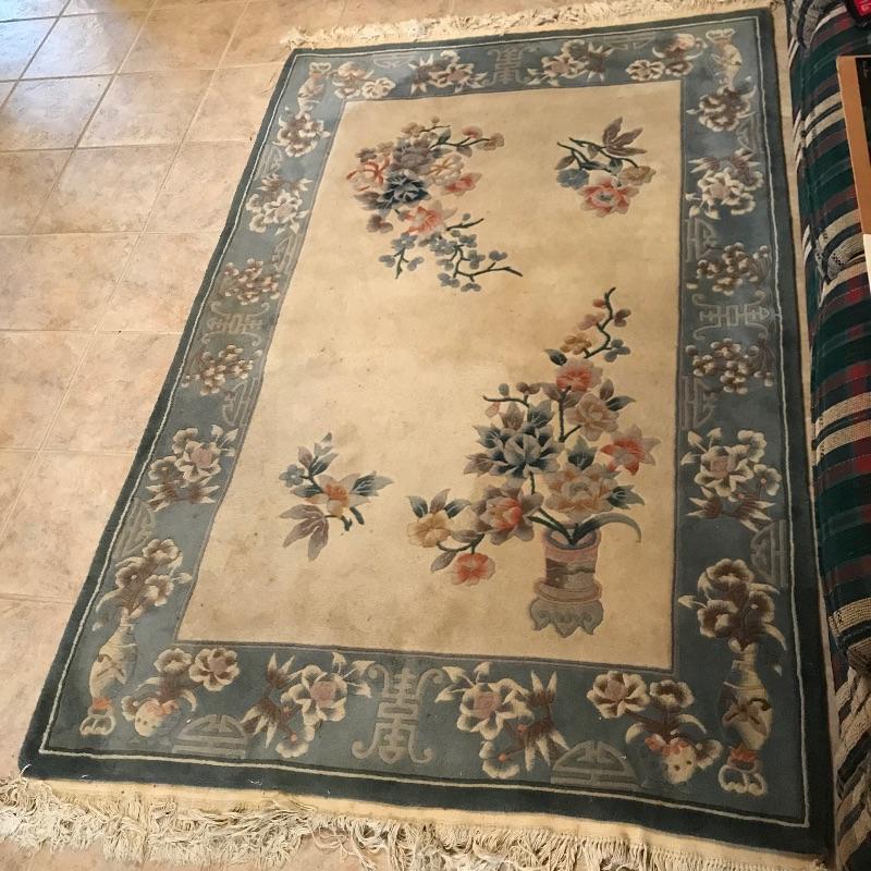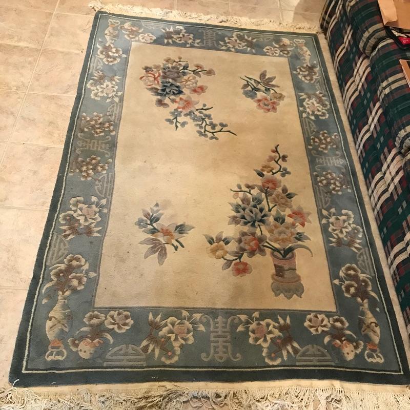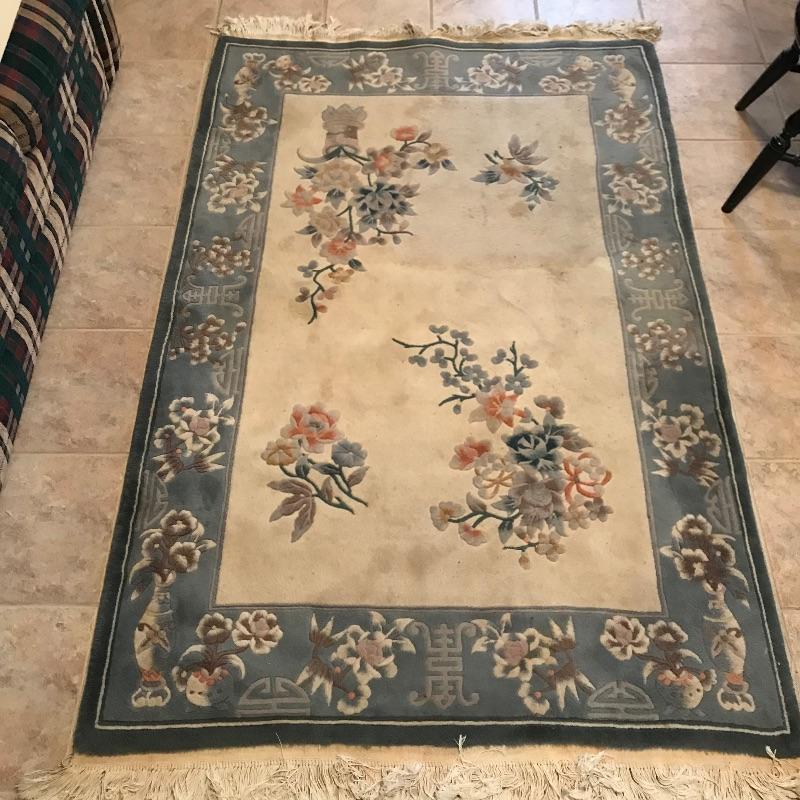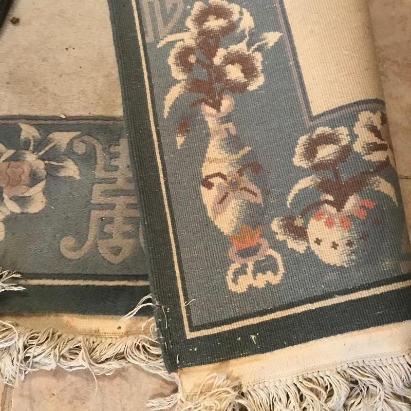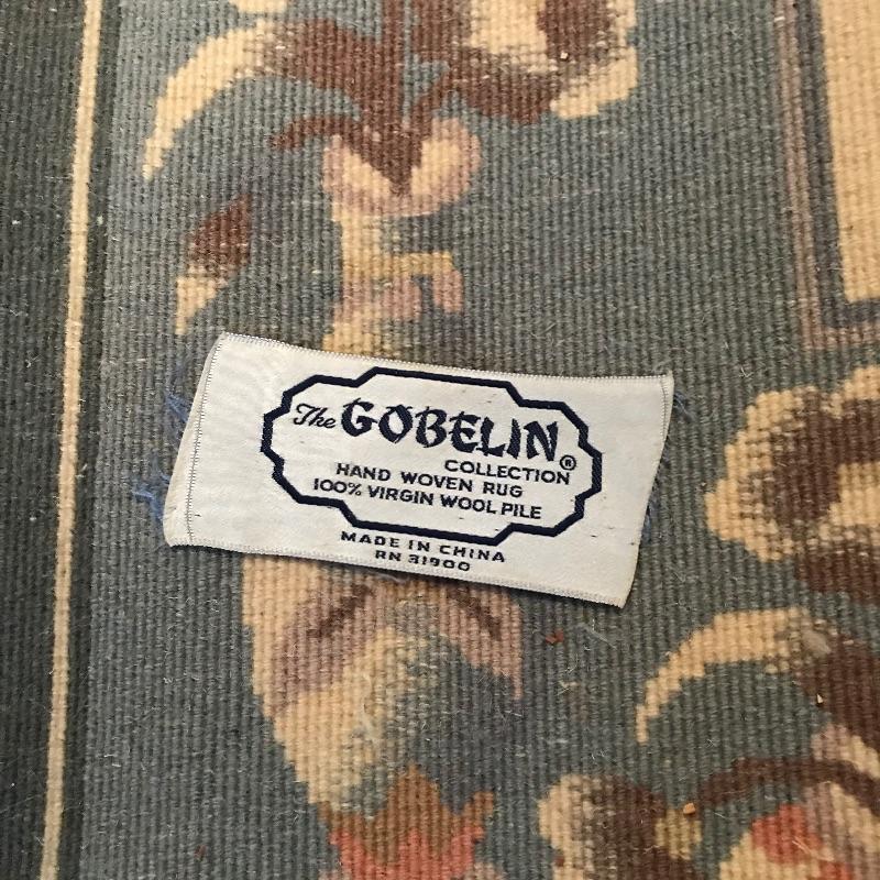 Two complementing Gobelin Hand Woven 100% Virgin Wool Pile 4’ x 6’ area rugs. Both rugs have beautiful borders with simple, yet elegant designs. The Gobelin tag has fallen off of the blue rug and both rugs need to be cleaned. See photos. No shipping.