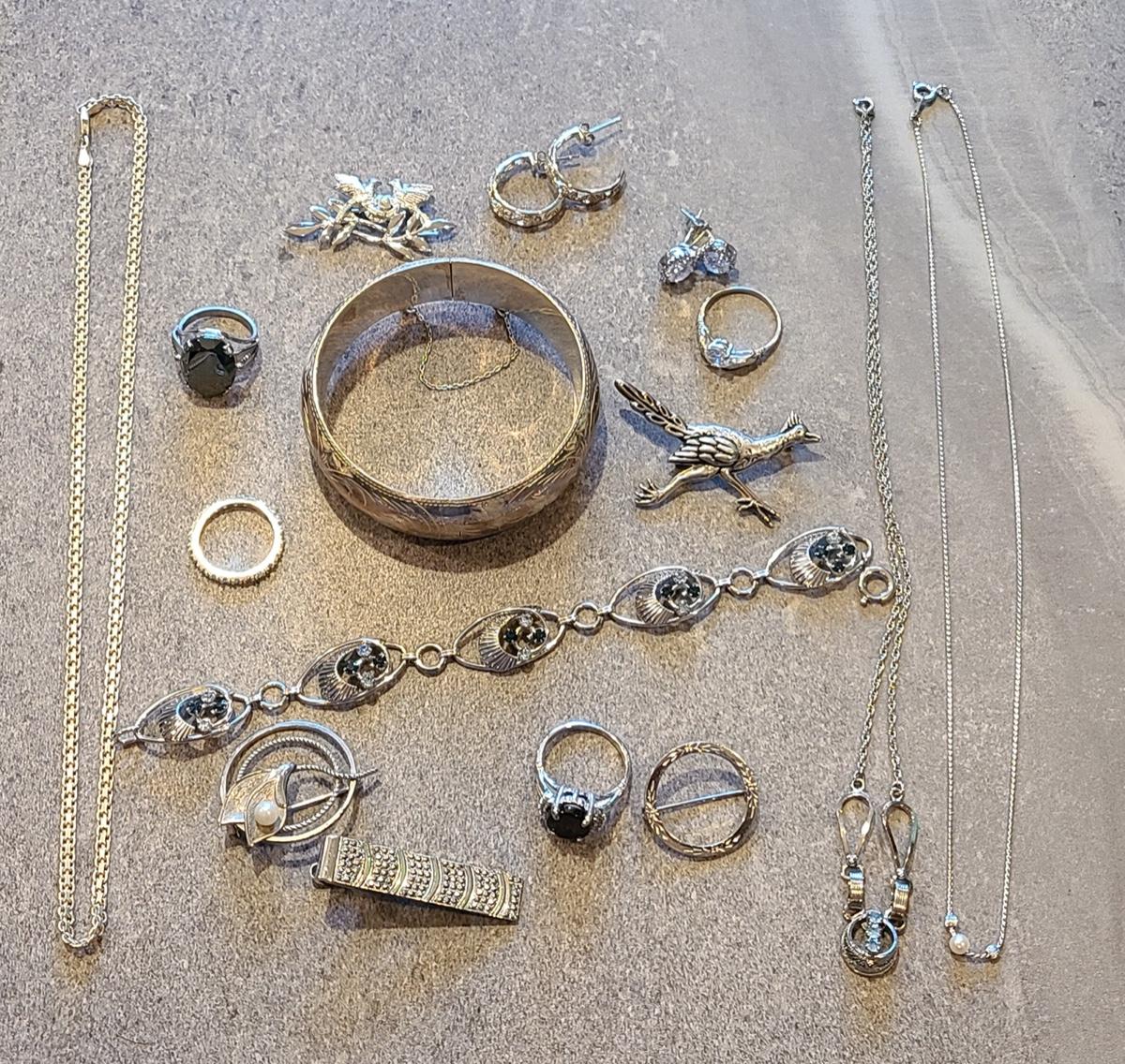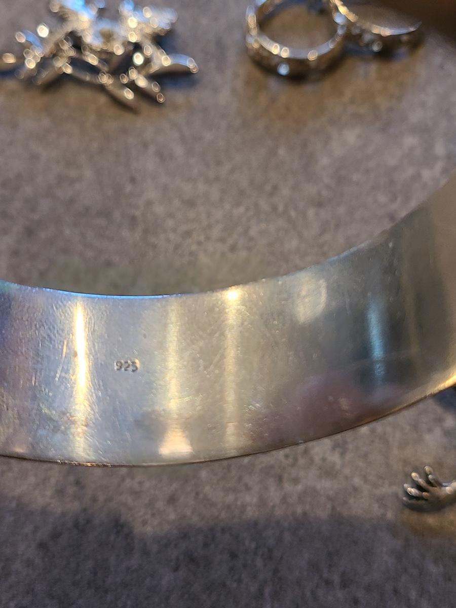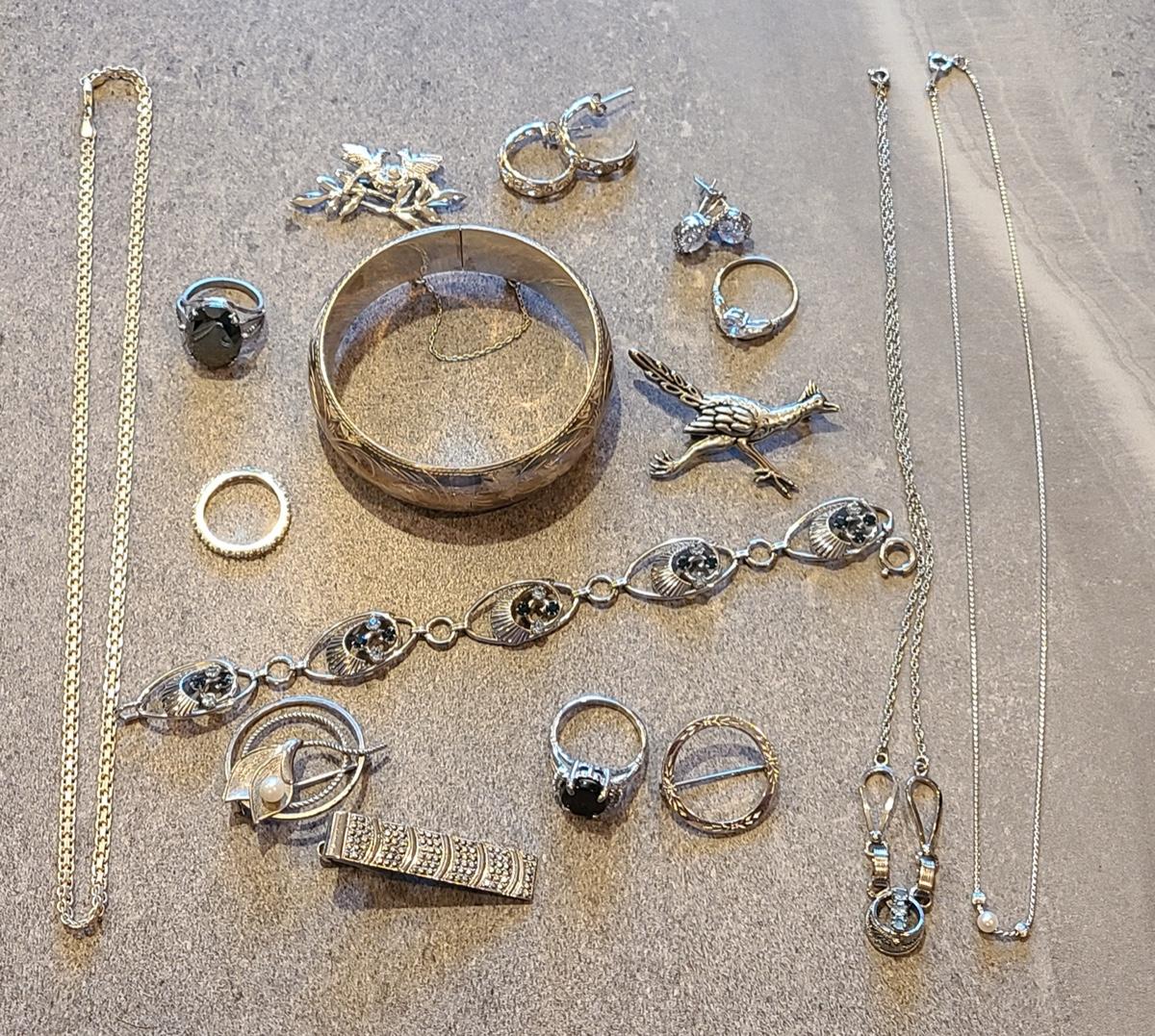 Lot 29: Vintage Sterling Silver Cuff Bracelet, Tie Clip, Rings and More