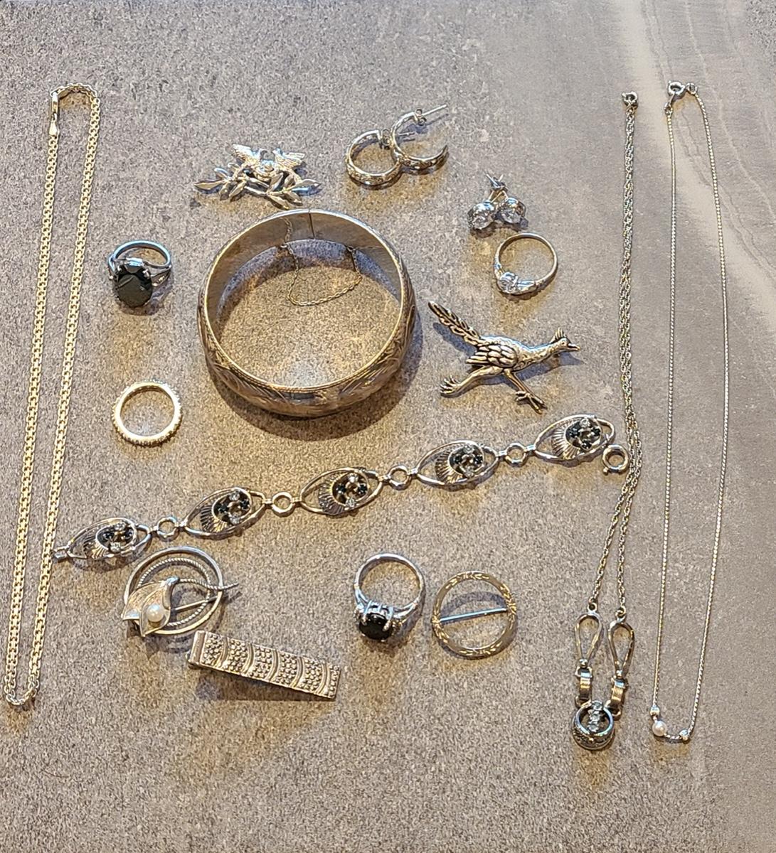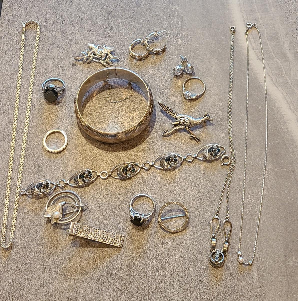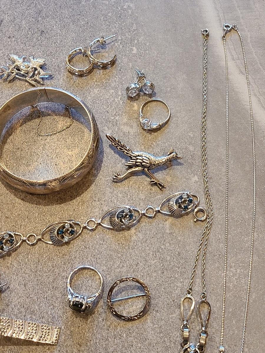 103.5 grams total weight. Vintage lot of jewelry marked either 925 or sterling silver. This is a mixed lot, please see pictures for content of the lot and condition of the pieces. Pre-owned as seen. Please see all pictures as they are the best representation of the items. The pictures show condition, measurements if taken, and what is included in the lot. Due to the large amount that we photograph and the time frame, we are not always able to take measurements. All items unless noted, are pre-owned and have been used. If you purchased furniture, you must bring help. We do not allow one person to carry large furniture out on their own. Bring help, tools and a truck for the safety of our client’s homes, and your personal safety. Company policy. Thank you.