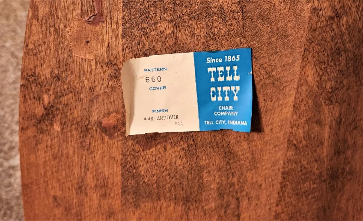 Marked "Tell City " a quality Mid-Century furniture maker, Andover finish, great condition. 23" across at the arms, 42" tall, 28" deep at the rockers. Sturdy and comfortable.
